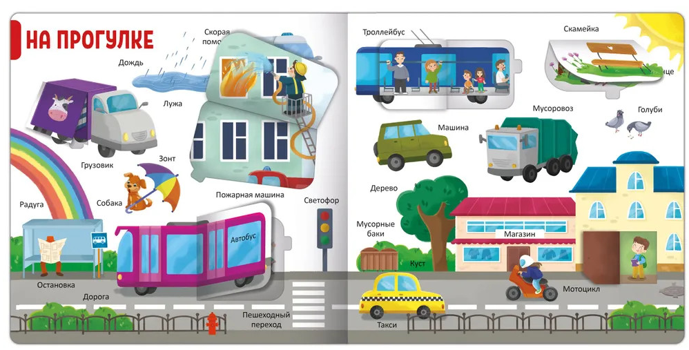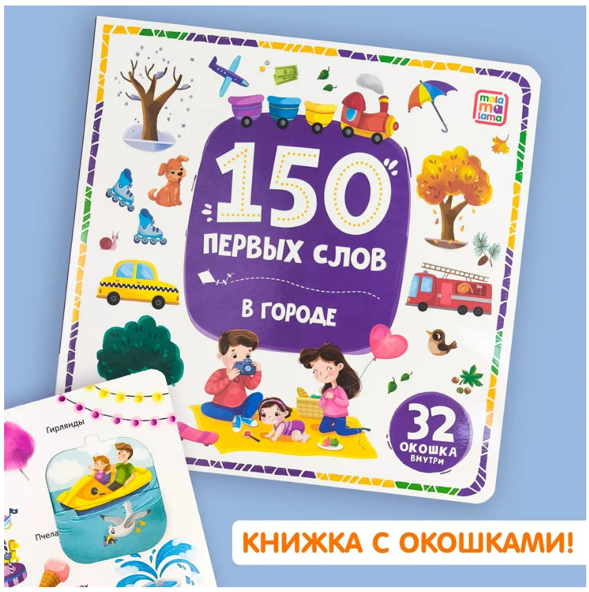 Серия «150 первых слов» от торговой марки Malamalama станет прекрасным помощником в расширении словарного запаса вашего малыша. В книге «В городе» собраны слова и выражения, связанные с общественными местами. Ребёнок сможет выучить названия предметов и явлений, которые встретятся ему на улицах города, во дворе, в парке, в магазине, в зоопарке и в кафе. Красочные иллюстрации и интересные окошки помогут запомнить слова и превратят обучение в весёлую игру. А плотные картонные странички и большой формат позволят малышу с комфортом листать и изучать книгу самостоятельно, вовлекая его в процесс. Книга «В городе» из серии «150 первых слов» знакомит ребёнка со словами и выражениями, связанными с общественными местами. Внутри 6 тематических разворотов с яркими иллюстрациями и окошками: «На прогулке», «В кафе», «Во дворе», «В парке», «В зоопарке», «В магазине».