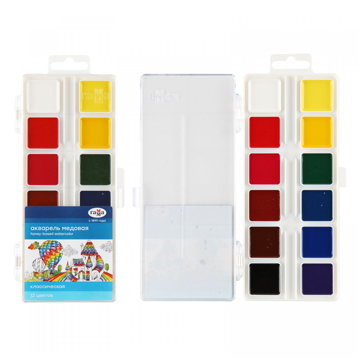 Медовая акварель в обновленной подложке: больший объем краски в кюветах - больше возможностей для творчества. Благодаря качественному прозрачному связующему в составе, цвета акварели яркие и чистые.