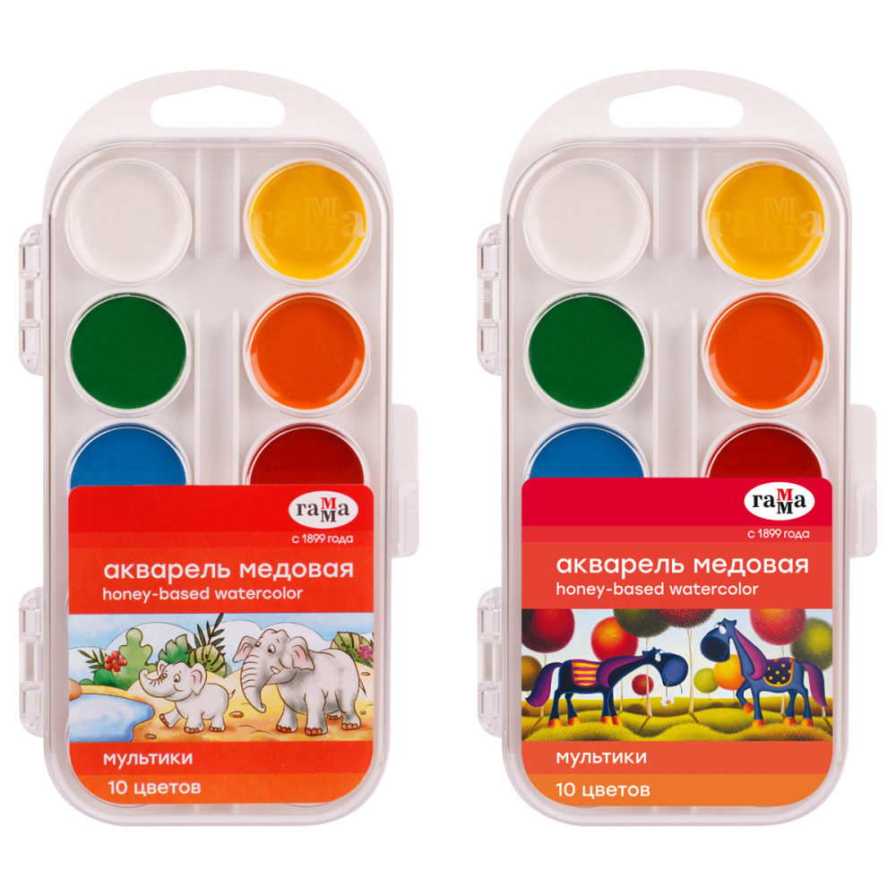 Акварель Гамма "Мультики" NEW, медовая, 10 цветов, без кисти