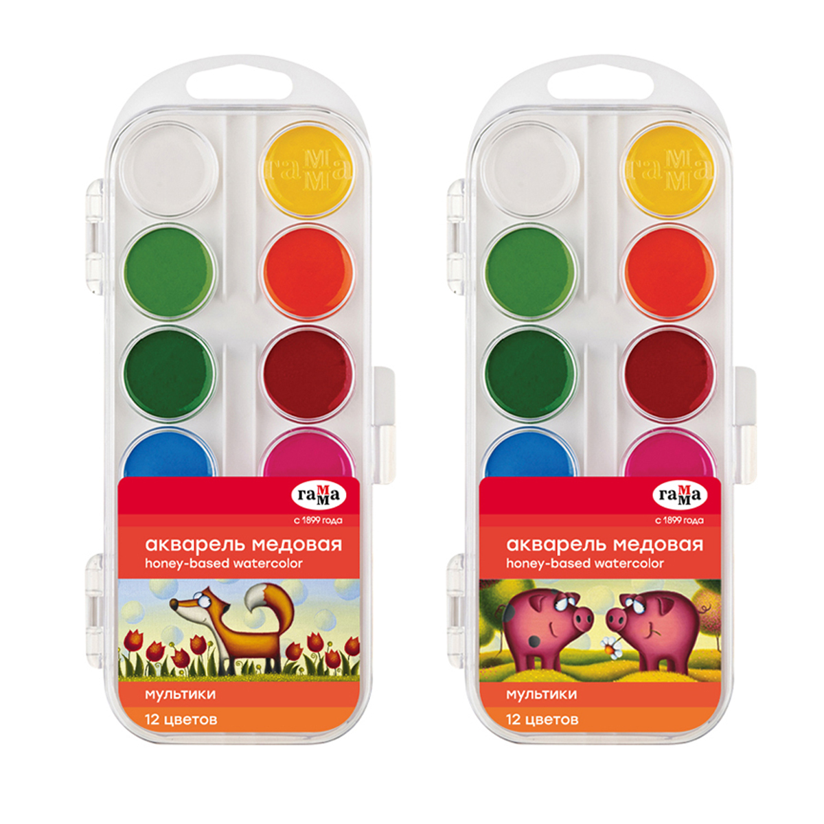 Акварель Гамма "Мультики" NEW, медовая, 12 цветов, без кисти