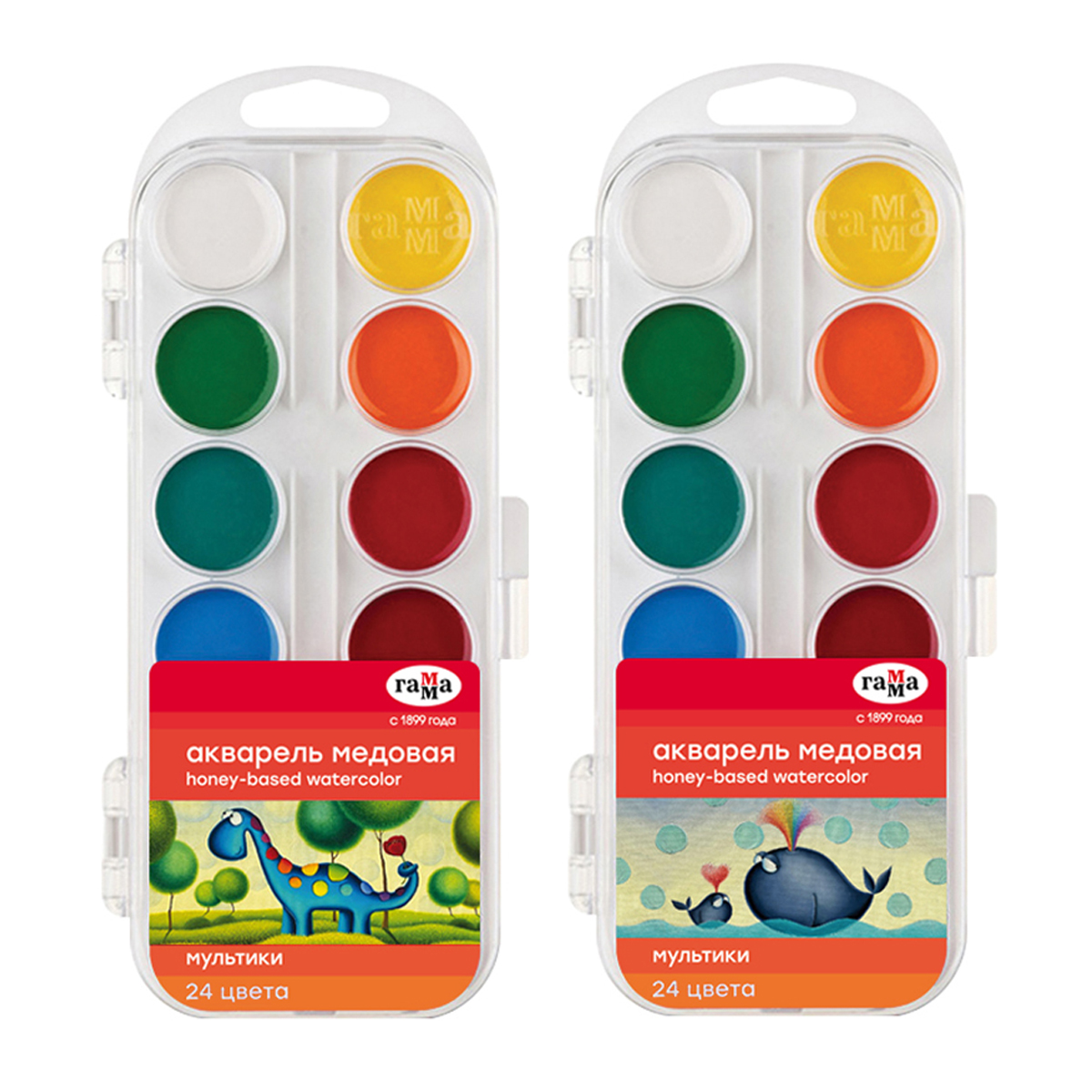 Акварель Гамма "Мультики" NEW, медовая, 24 цвета, без кисти