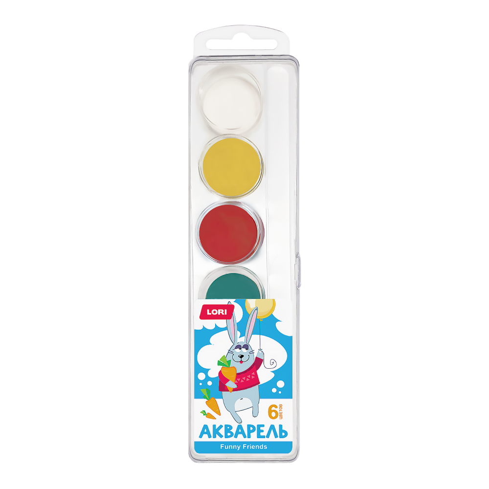 Аквф-001 Акварель FUNNY FRIENDS 6 цв, без кисточки, в пластиковой упаковке с крышкой