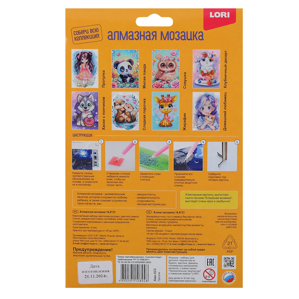 Алмазная мозаика для детей имеет цветной рисунок на картонной основе формата А5 с частичным заполнением. Благодаря этому готовая картинка выглядит объемной и красиво переливается разными цветами. Процесс создания мозаики развивает внимательность, усидчивость, аккуратность, а также способен улучшить эмоциональный фон.