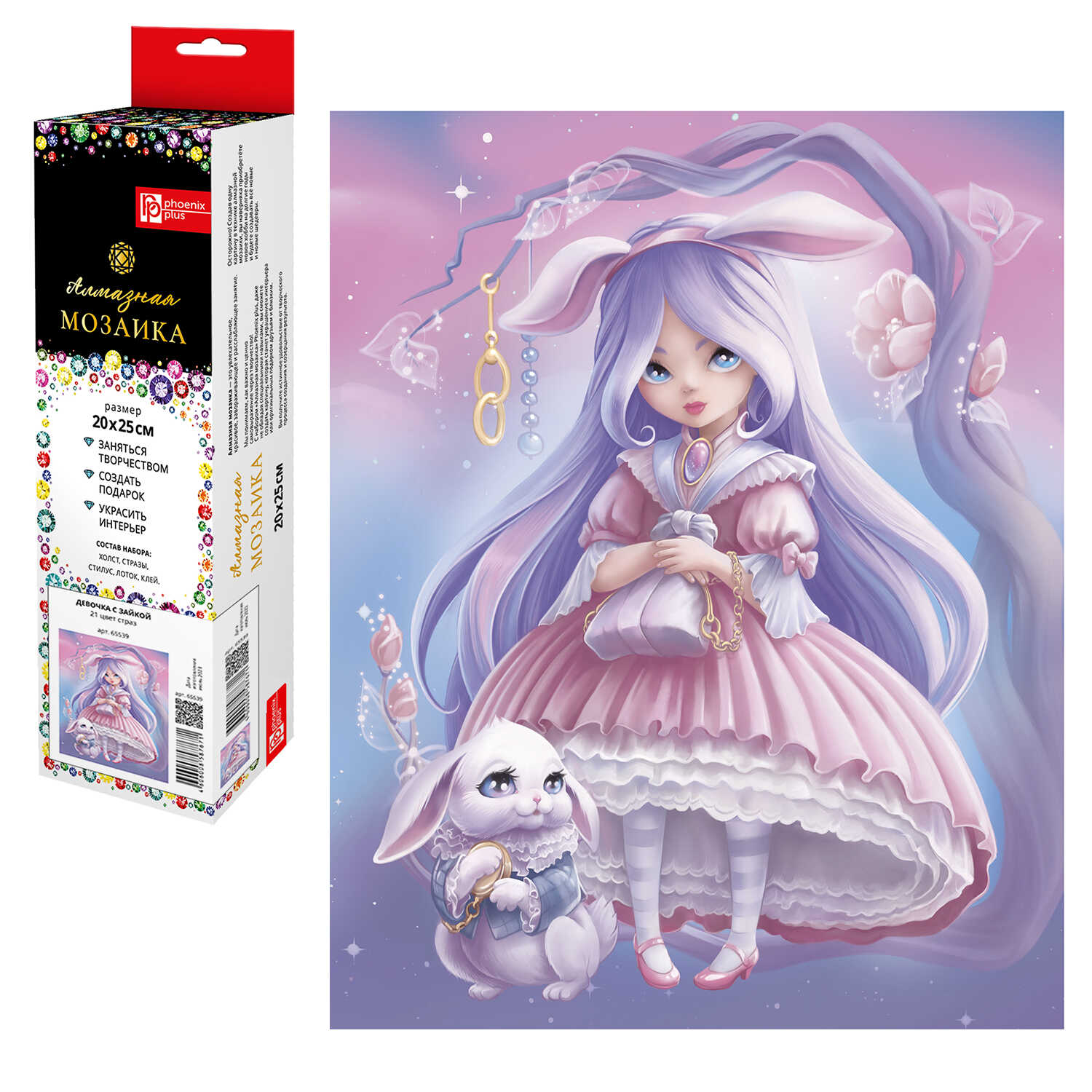 Алмазная мозаика арт. 65539 / 50 АЛИСА, размер: 20*25 см, (21 цветов страз, холст с напечатанной картиной, покрытый клеевым слоем и защитной пленкой, пакеты со стразами, стилус, лоток для страз, силикон для страз, клей, пинцет металлический, схема, дополнительные пакеты с zip-молнией, стикеры для нумерации zip-пакетов в комплекте, форма страз: круглая, тип выкладки: полная, картонная коробка с европодвесом)