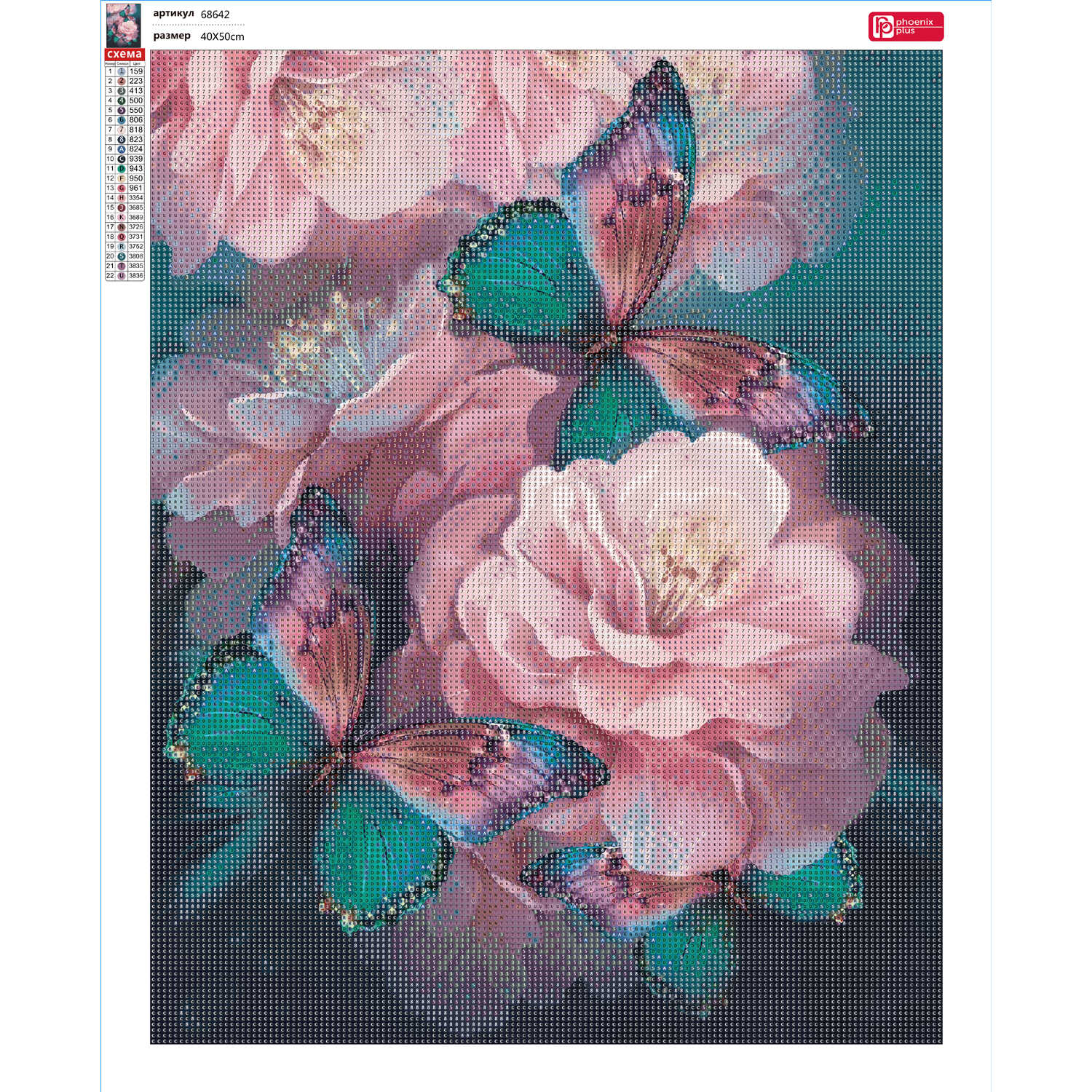 Алмазная мозаика арт. 68642 / 50 БАБОЧКИ В ЦВЕТАХ, размер: 40*50 см, (22 цветов страз, холст с напечатанной картиной, покрытый клеевым слоем и защитной пленкой, пакеты со стразами, стилус, лоток для страз, силикон для страз, клей, пинцет металлический, схема, дополнительные пакеты с zip-молнией, стикеры для нумерации zip-пакетов в комплекте, форма страз: круглая, тип выкладки: полная, картонная коробка с европодвесом)