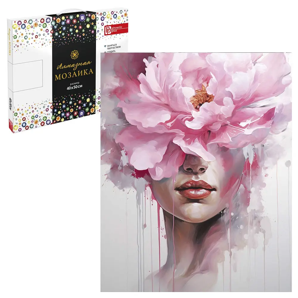 Комплектность: холст на подрамнике с напечатанной картиной, покрытый клеевым слоем и защитной пленкой, пакеты со стразами, стилус, лоток для страз, силикон для страз, клей, подвесы для подрамника, пинцет металлический, схема, дополнительные пакеты с zip-молнией, стикеры