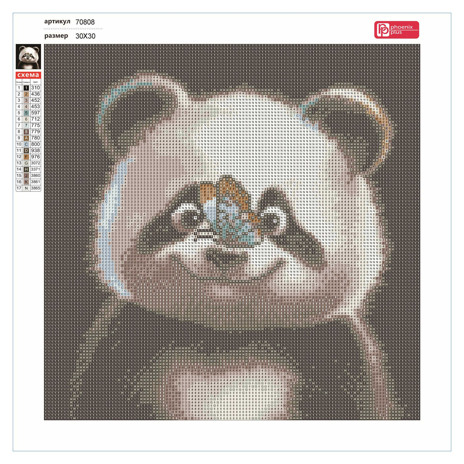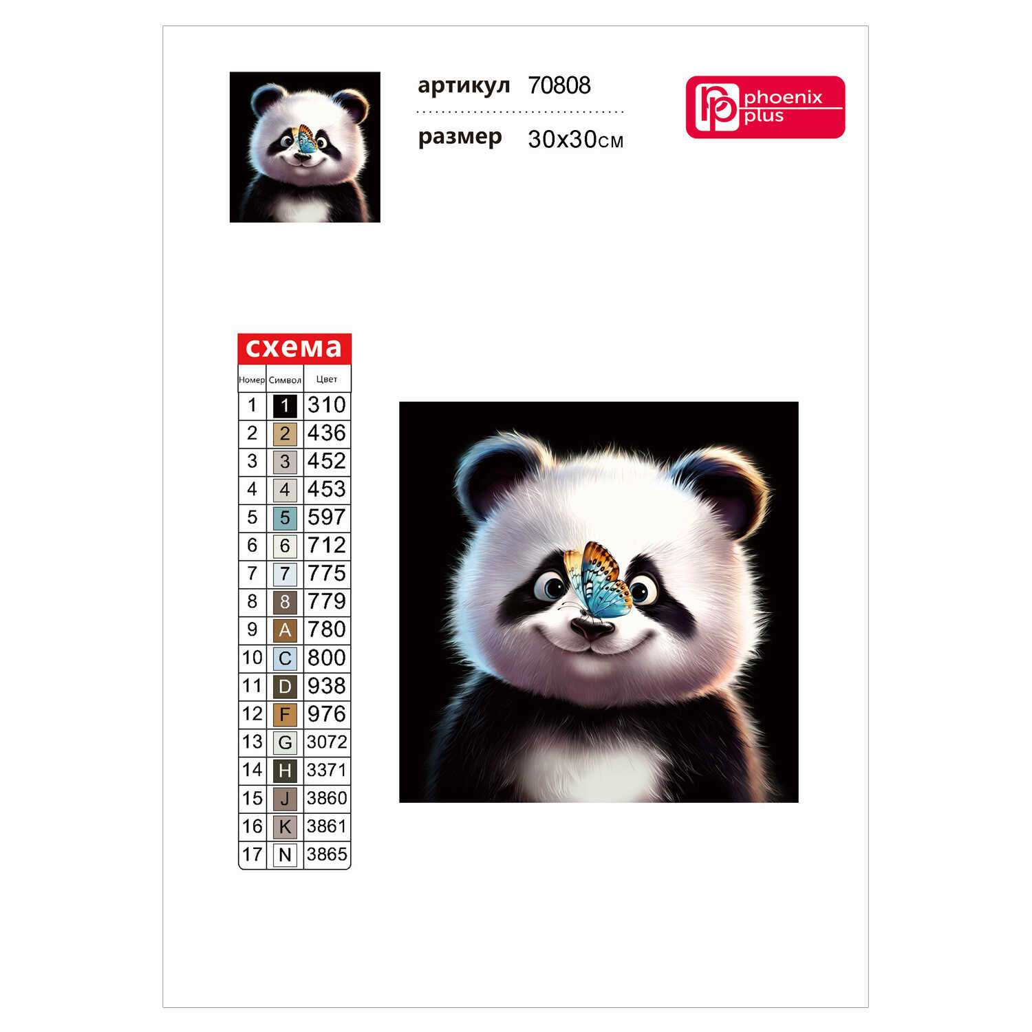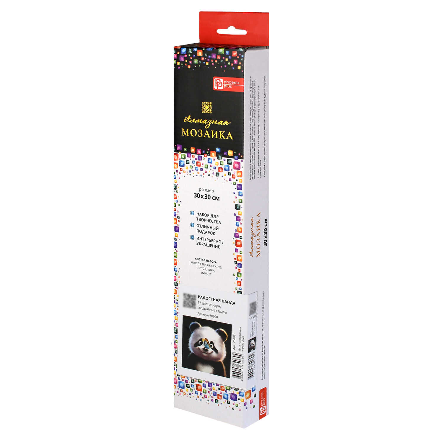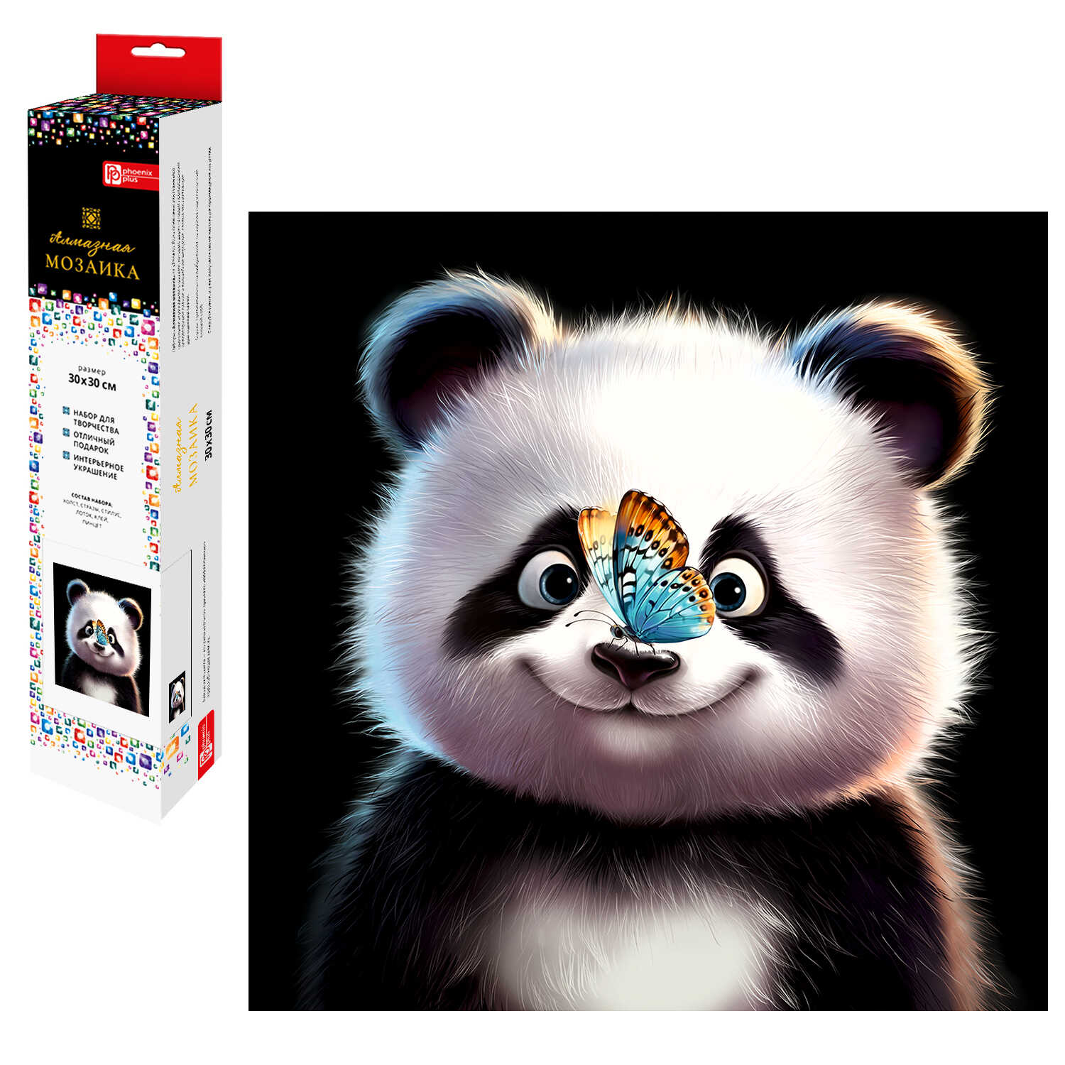 Алмазная мозаика (набор для творчества) арт. 70808 / 50 РАДОСТНАЯ ПАНДА, размер: 30x30 см, (17 цветов страз, холст с напечатанной картиной, покрытый клеевым слоем и защитной пленкой, пакеты со стразами, стилус, лоток для страз, силикон для страз, клей, пинцет металлический, схема, дополнительные пакеты с zip-молнией, стикеры для нумерации zip-пакетов в комплекте, форма страз: квадратная, тип выкладки: полная, картонная коробка с европодвесом)
