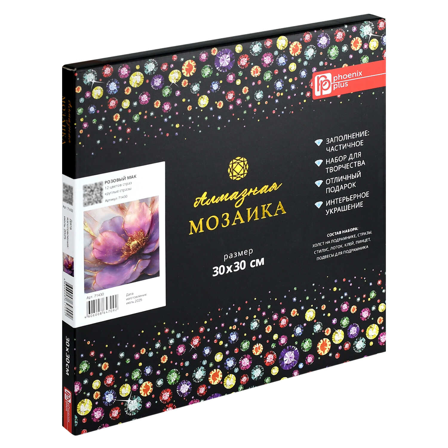 Алмазная мозаика с частичной выкладкой (набор для творчества) арт. 71430 / 25 РОЗОВЫЙ МАК, размер: 30*30 см, (12 цветов страз, холст на подрамнике с напечатанной картиной, покрытый клеевым слоем и защитной пленкой, пакеты со стразами, стилус, лоток для страз, силикон для страз, клей, подвесы для подрамника, пинцет металлический, схема, дополнительные пакеты с zip-молнией, стикеры для нумерации zip-пакетов в комплекте, форма страз: круглая, тип выкладки: частичная, картонная коробка)