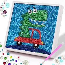 Алмазная мозаика с рамкой Динозаврик хорошо влияет на зрительное восприятие , воображение , моторику рук. Алмазная мозаика по номерам и буквам поможет выработать усидчивость и внимательность у вашего ребёночка.