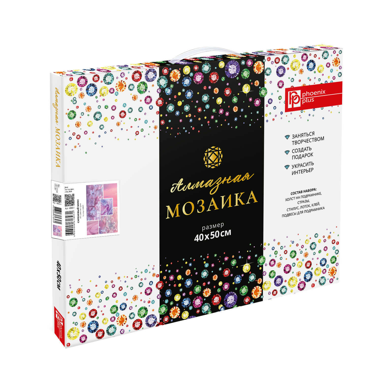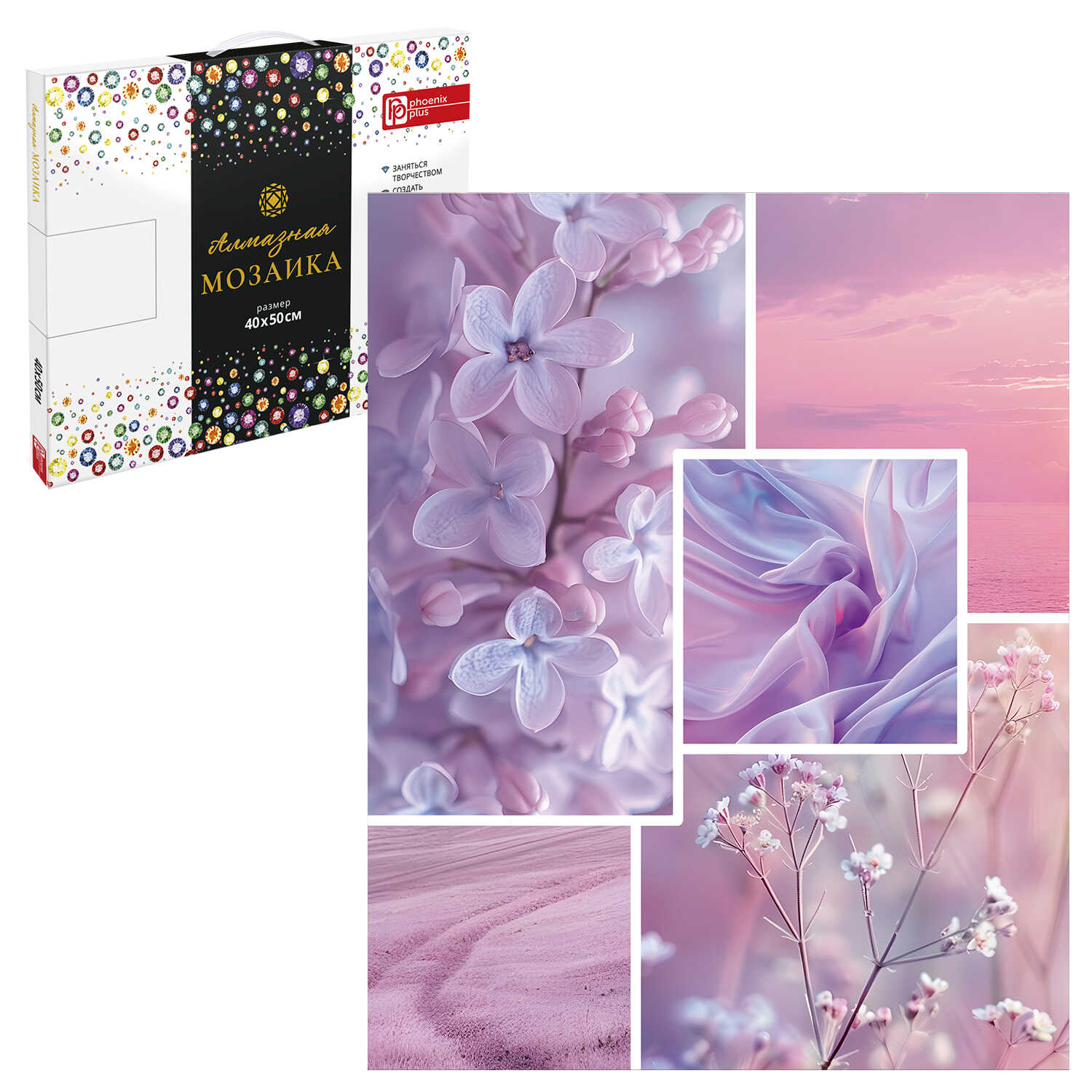 Алмазная мозаика арт. 68651 / 16 СИРЕНЕВЫЙ МИКС, размер: 40*50 см, (19 цветов страз, холст на подрамнике с напечатанной картиной, покрытый клеевым слоем и защитной пленкой, пакеты со стразами, стилус, лоток для страз, силикон для страз, клей, подвесы для подрамника, пинцет металлический, схема, дополнительные пакеты с zip-молнией, стикеры для нумерации zip-пакетов в комплекте, форма страз: круглая, тип выкладки: полная, картонная коробка)