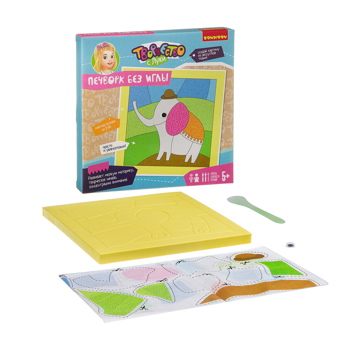 Печворк или лоскутная аппликация - это увлекательный творческий набор с многочисленными развивающими свойствами. Аккуратно вырежете тканевые фрагменты и зафиксируйте их на объемной основе из ЕВА, заправляя остатки ткани в прорези на основе с помощью специальной лопаточки. Так, шаг за шагом, заполнятся все участки и создастся объемная яркая картина в технике печворк. Отлично тренируется мелкая моторика, цветовосприятие, пространственное мышление.