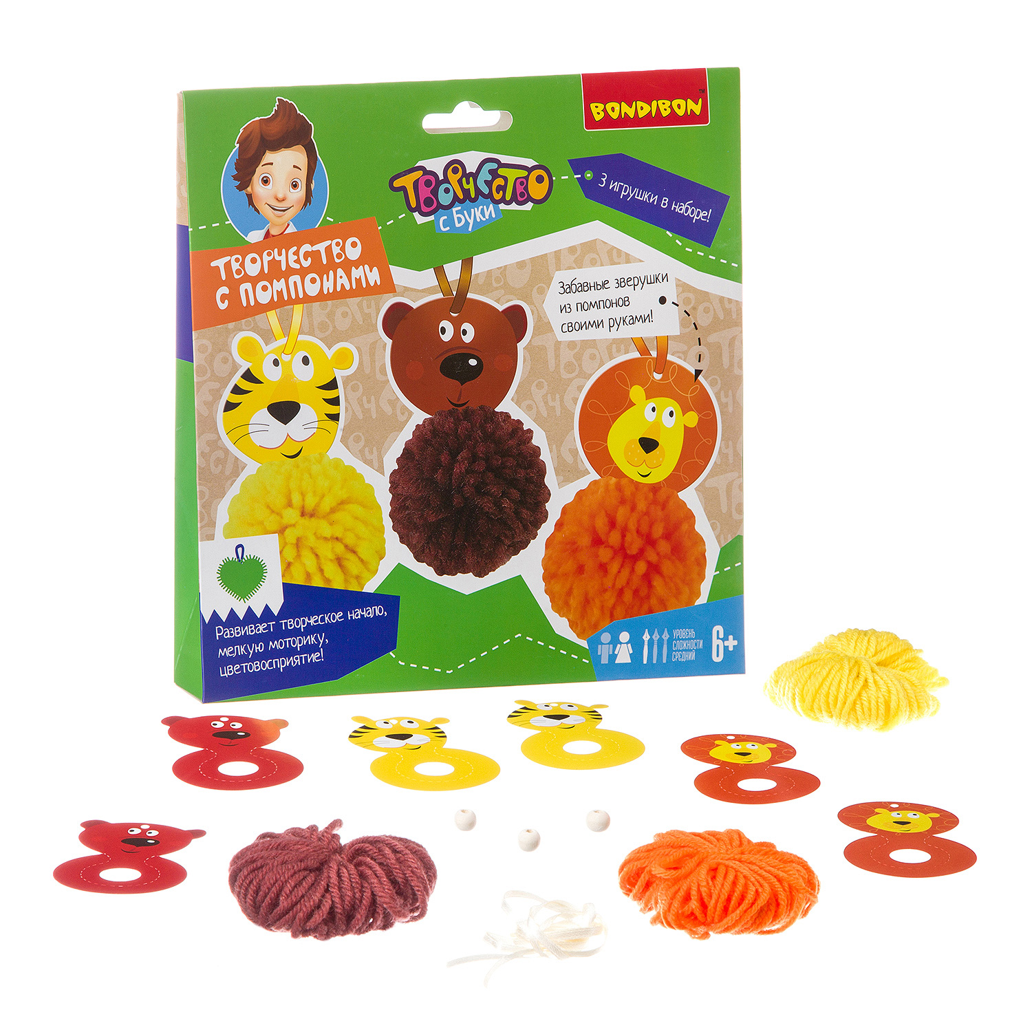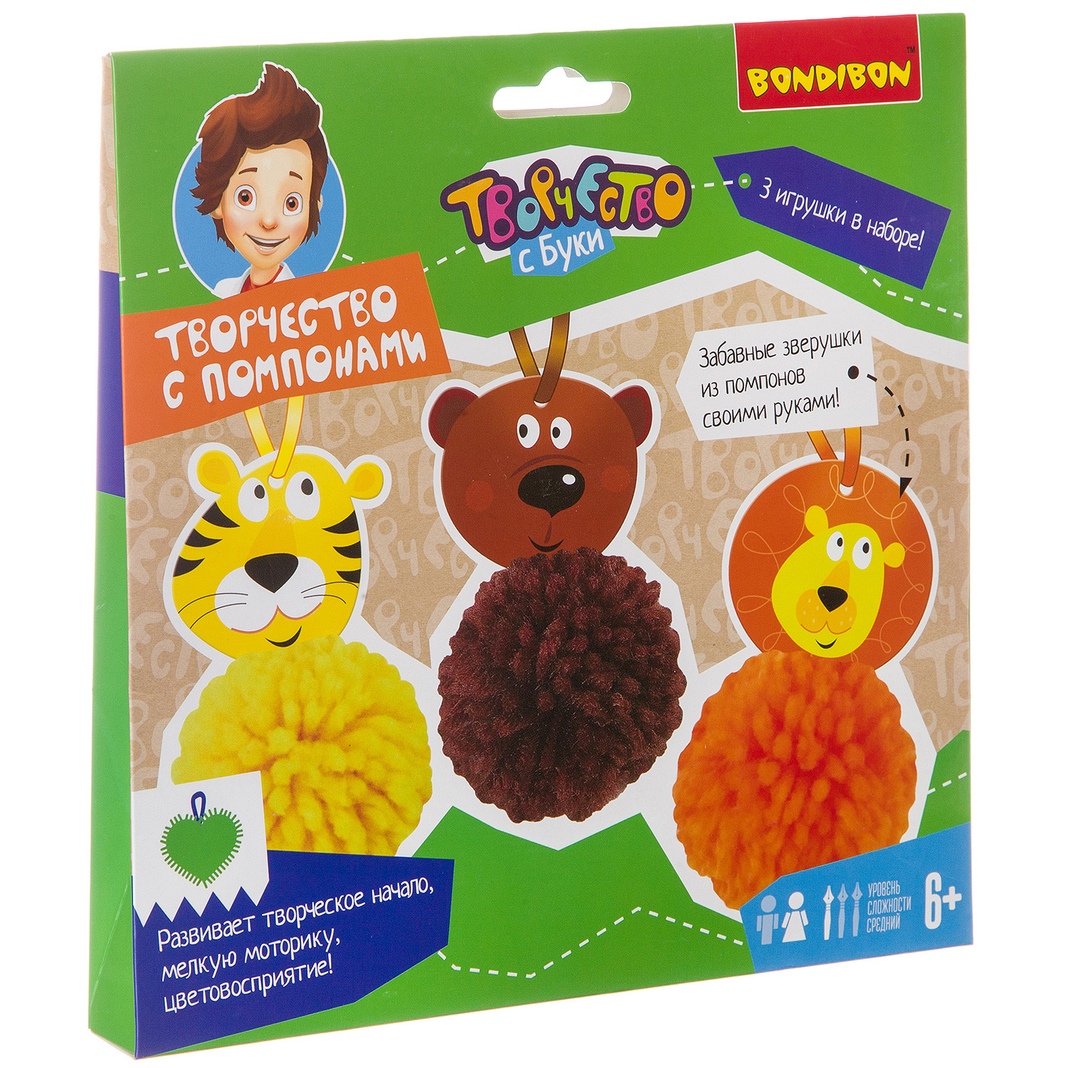 BONDIBON. Творчество с помпонами. Забавные зверушки! (лев, медведь, тигр)
