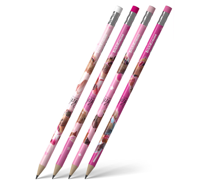 Чернографитный карандаш пластиковый ErichKrause CapyBarbara, круглый, с ластиком, НВ