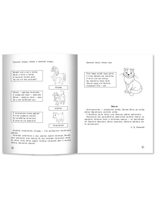 Если ребёнок научился читать предложения и понимать их смысл, то можно приступать к чтению текстов. Занятия будут проходить более интересно в том случае, если малыш не только читает тексты, но и отвечает на вопросы по содержанию или выполняет задания. При этом развивается интерес к чтению, ведь ребёнок узнаёт что-то новое. Задания в данной книге построены именно таким образом, что делает процесс обучения более успешным.