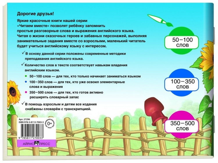 Книга входит в серию иллюстрированных учебных пособий «Читаем вместе». В русской народной сказке говорится о хитрой лисе, которая попыталась обмануть своего друга — журавля и получила по заслугам. Прочитав сказку, ребёнок познакомится с простым настоящим временем (Present Simple), научится использовать глагол like, поймёт разницу между предлогами on и in.