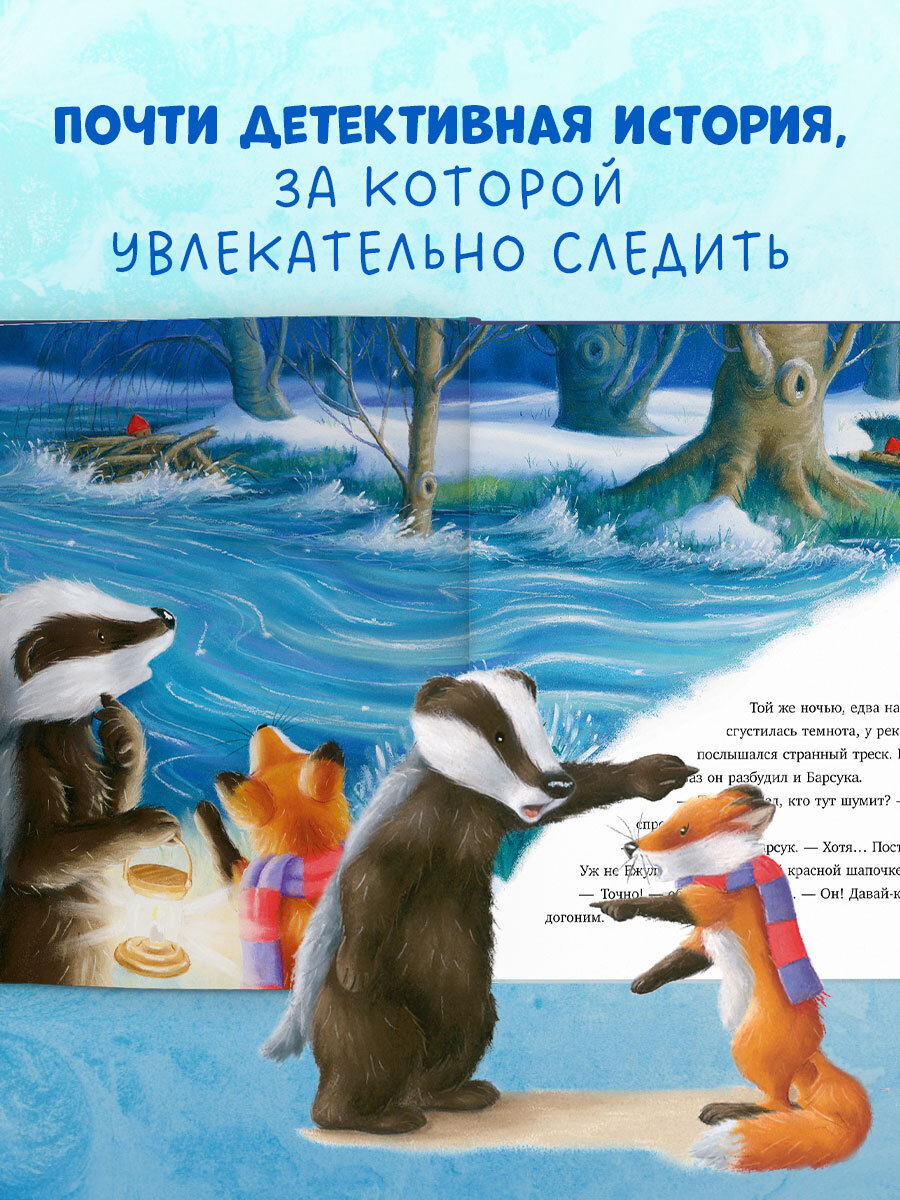 В канун Нового года на реке раздался странный шум: У-У-У! КР-РАК! БУХ! БУМ! Лиса и Барсук решили провести расследование: они видели, как в темноте мелькнула красная шапочка Ежульки. Однако тот твердо заявил, что крепко спал всю ночь… Кто же этот таинственный шумный гость? И почему Новый год оказался под угрозой?