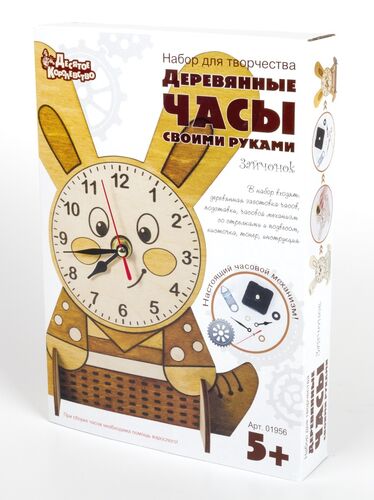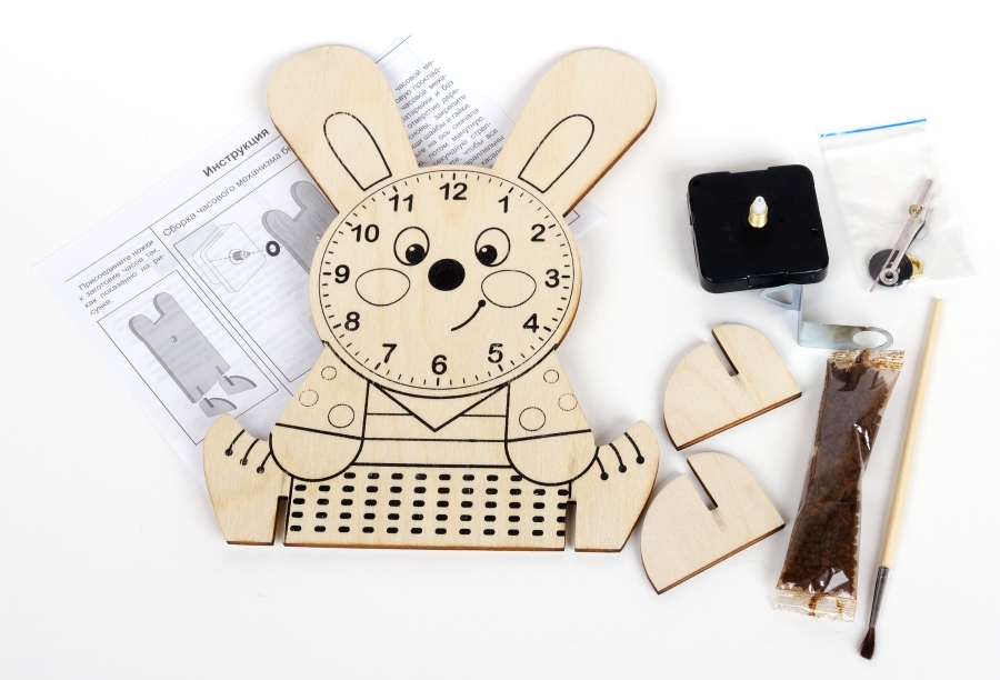 Набор для творчества, стильные деревянные часы «Зайчонок» с настоящим часовым механизмом для детей старше 5 лет.
