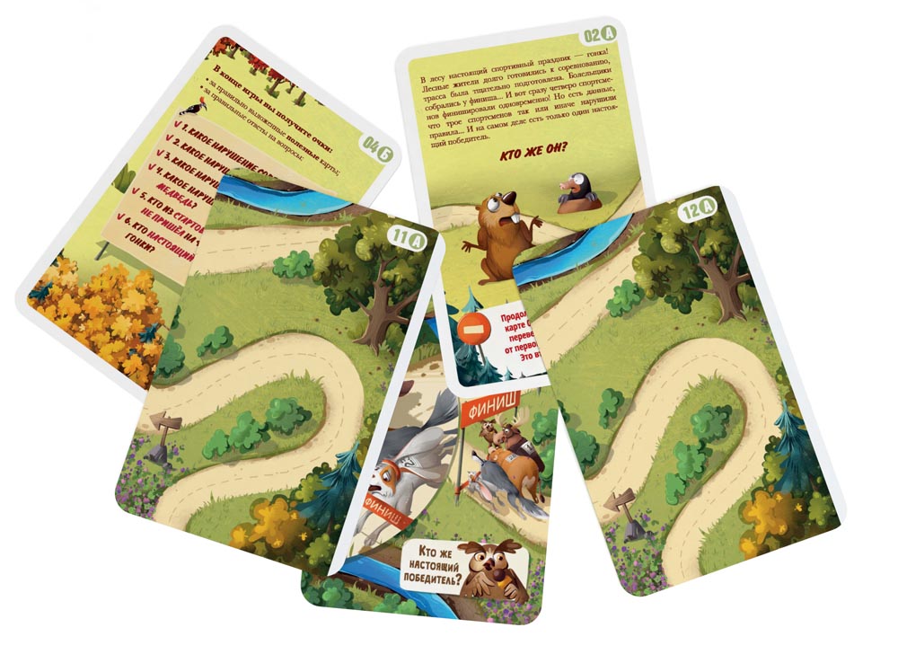 В лесу настоящий спортивный праздник – гонка! Лесные жители долго готовились к соревнованию, трасса была тщательно подготовлена. Болельщики собрались у финиша... И вот сразу четверо спортсменов финишировали одновременно! Но есть данные, что трое спортсменов так или иначе нарушили правила... И на самом деле есть только один настоящий победитель. Кто же он?