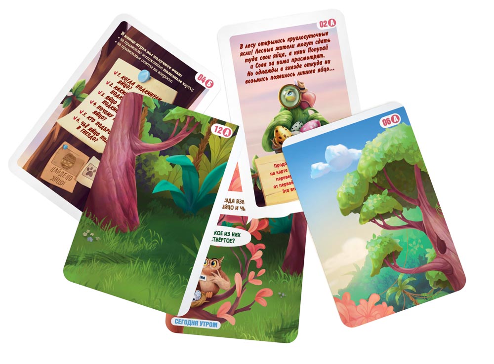 В лесу открылись круглосуточные ясли! Лесные жители могут туда сдать свои яйца, а няни Попугай и Сова за ними присмотрят. Но однажды в гнезде откуда ни возьмись появилось лишнее яйцо...разгадайте тайну подброшенного яйца!