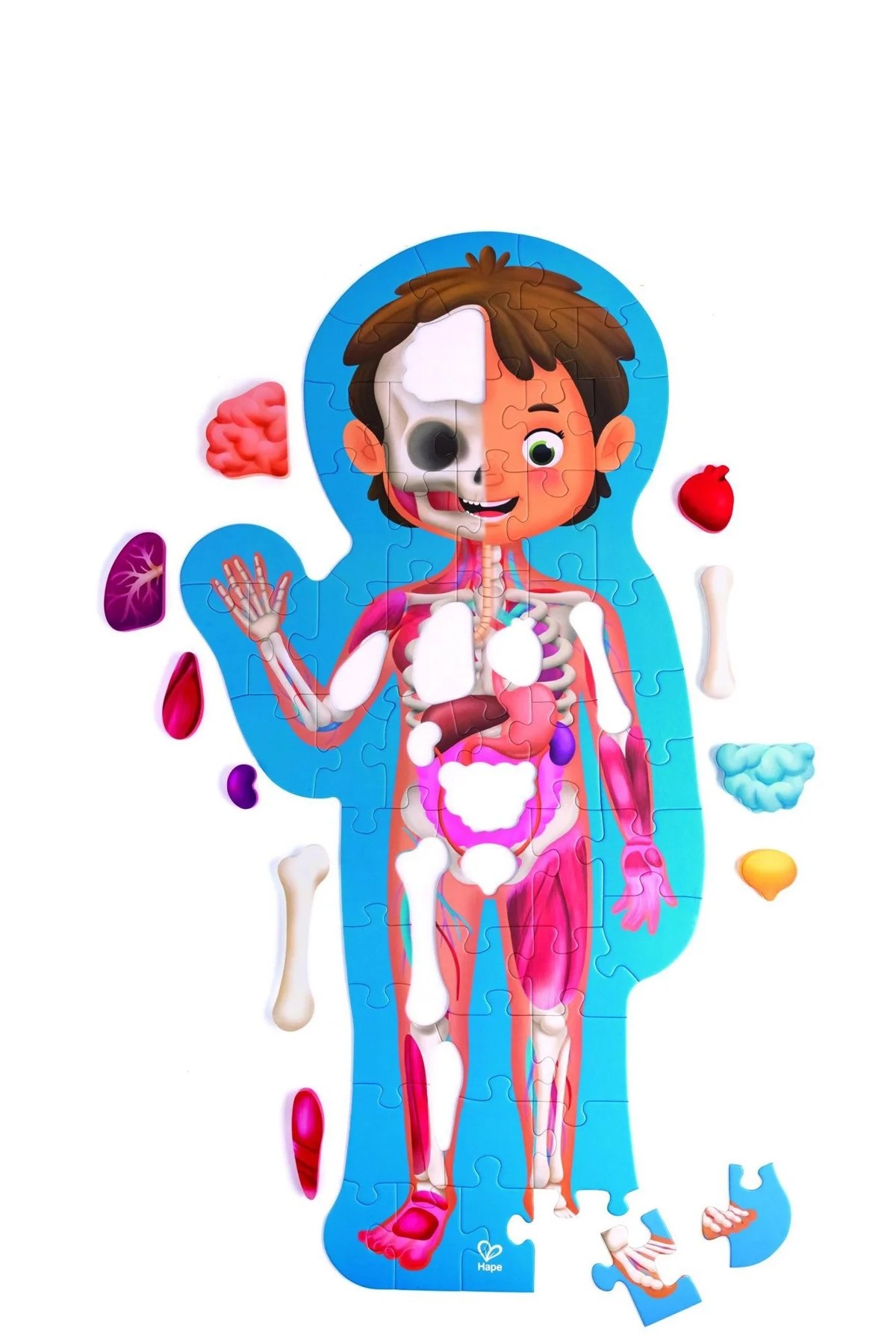 Сначала соберите тело, как в любой головоломке, затем расположите кости, мышцы и другие органы. Содержит большой двусторонний плакат (на 11 языках) с забавными фактами о человеческом теле. Помогает развить зрительно-моторную координацию, мелкую моторику и способность решать проблемы.