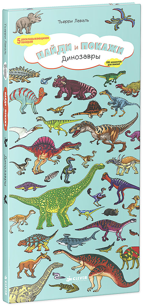 • Книга «Найди и покажи. Динозавры» - это 5 раскладывающихся панорам и 196 предметов для поиска!