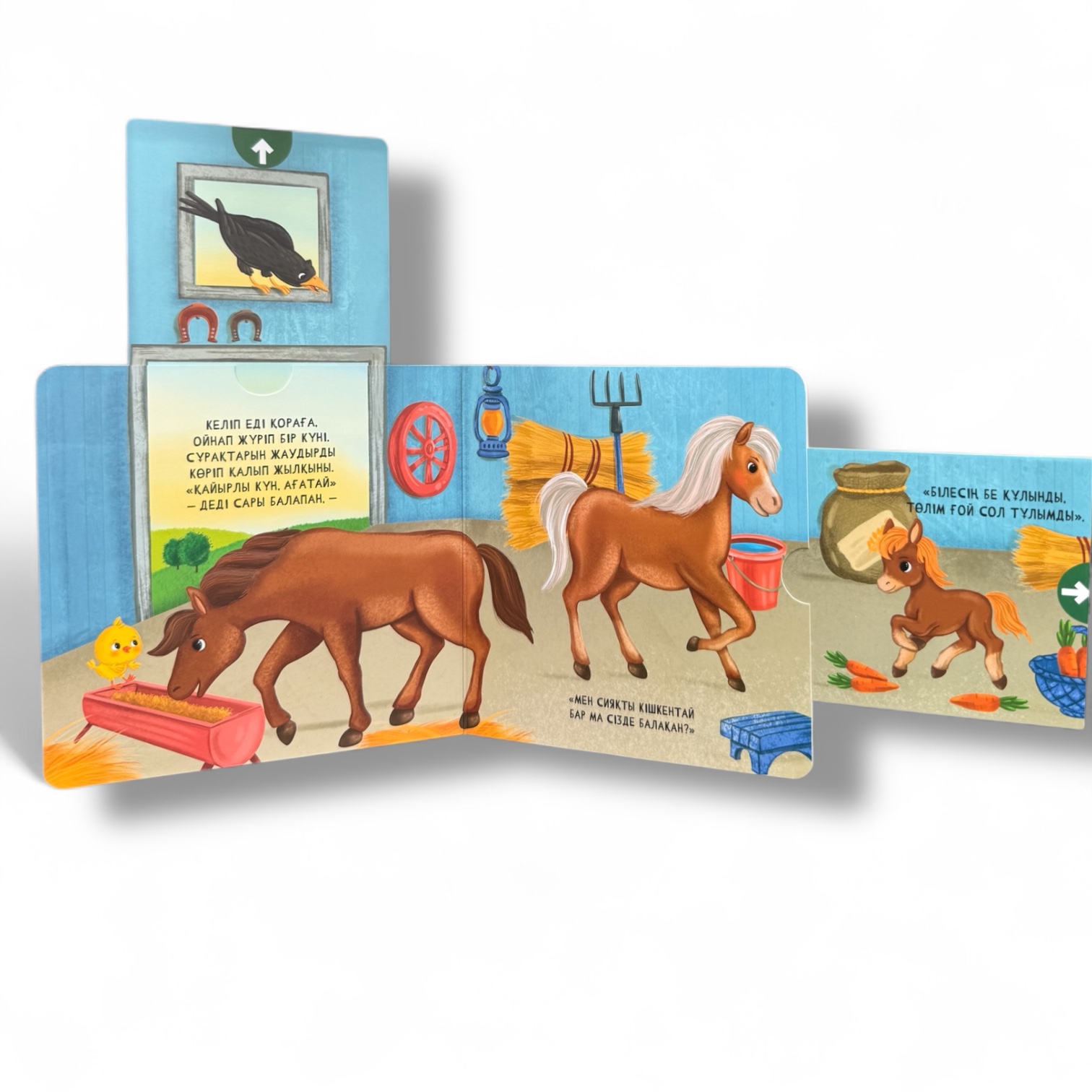 • Жарқын иллюстрациялары мен сүйкімді кейіпкерлері балақайдың көңілін бірден баурап алады.
