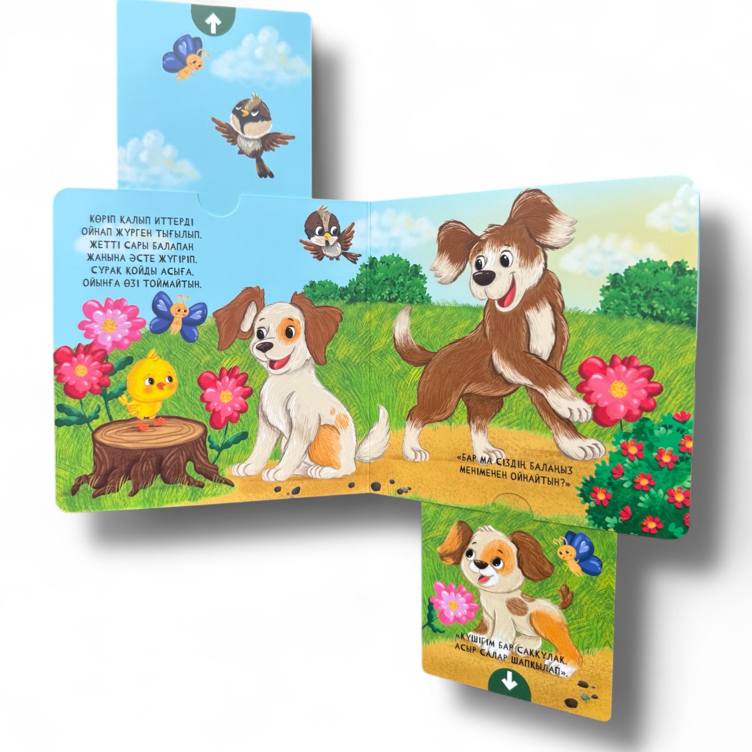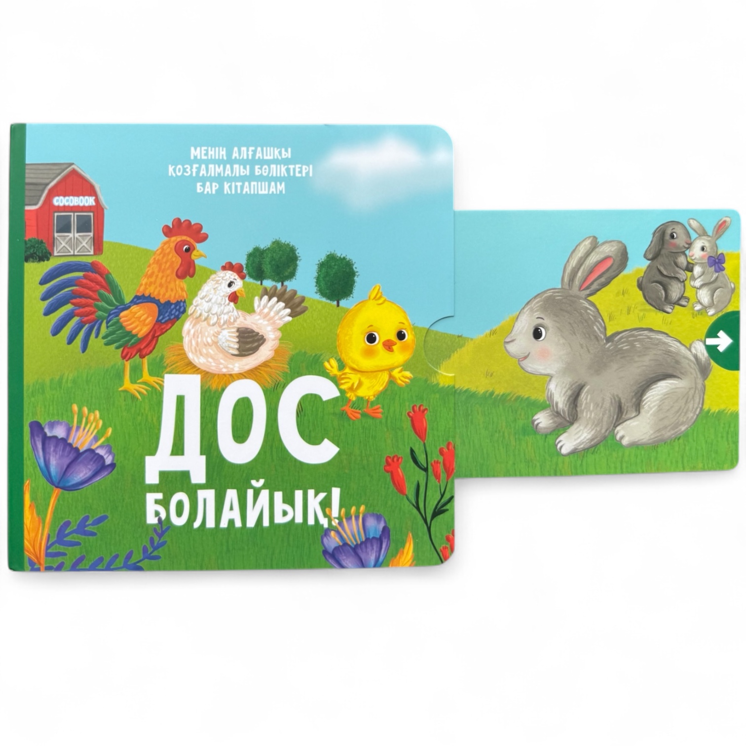 «Дос болайық!» кітабы «Менің алғашқы қозғалмалы бөліктері бар кітапшам» сериясынан.