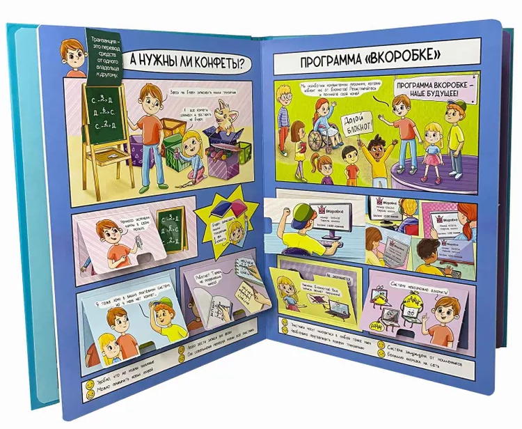 Красочные иллюстрации и простые аналогии позволят быстро погрузиться в мир криптовалют даже юным читателям, а короткие и понятные тексты в окошках помогут разобраться в понятиях и сделать первый шаг к практическому использованию «денег будущего».