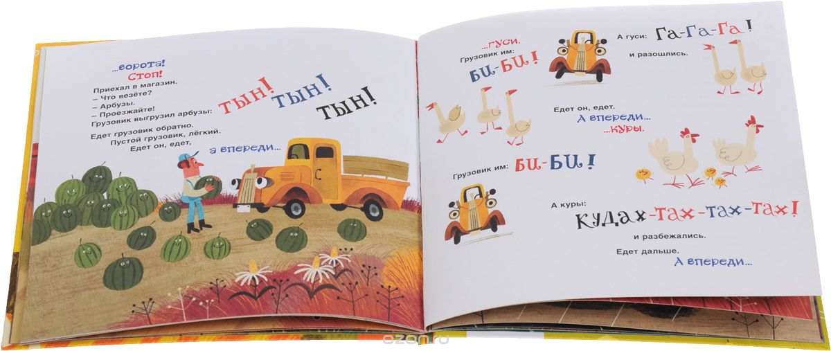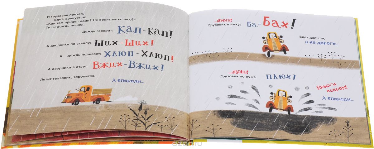 История для самых маленьких о том, как грузовик и его друг непоседливый прицеп трудятся с утра до ночи, развозя разные грузы. В пути их ждут ямки и ямищи, горы и пригорки, и лужи, и дожди... Этак у кого хочешь колесо разболится... Хорошо, что друг всегда придет на помощь в трудную минуту!