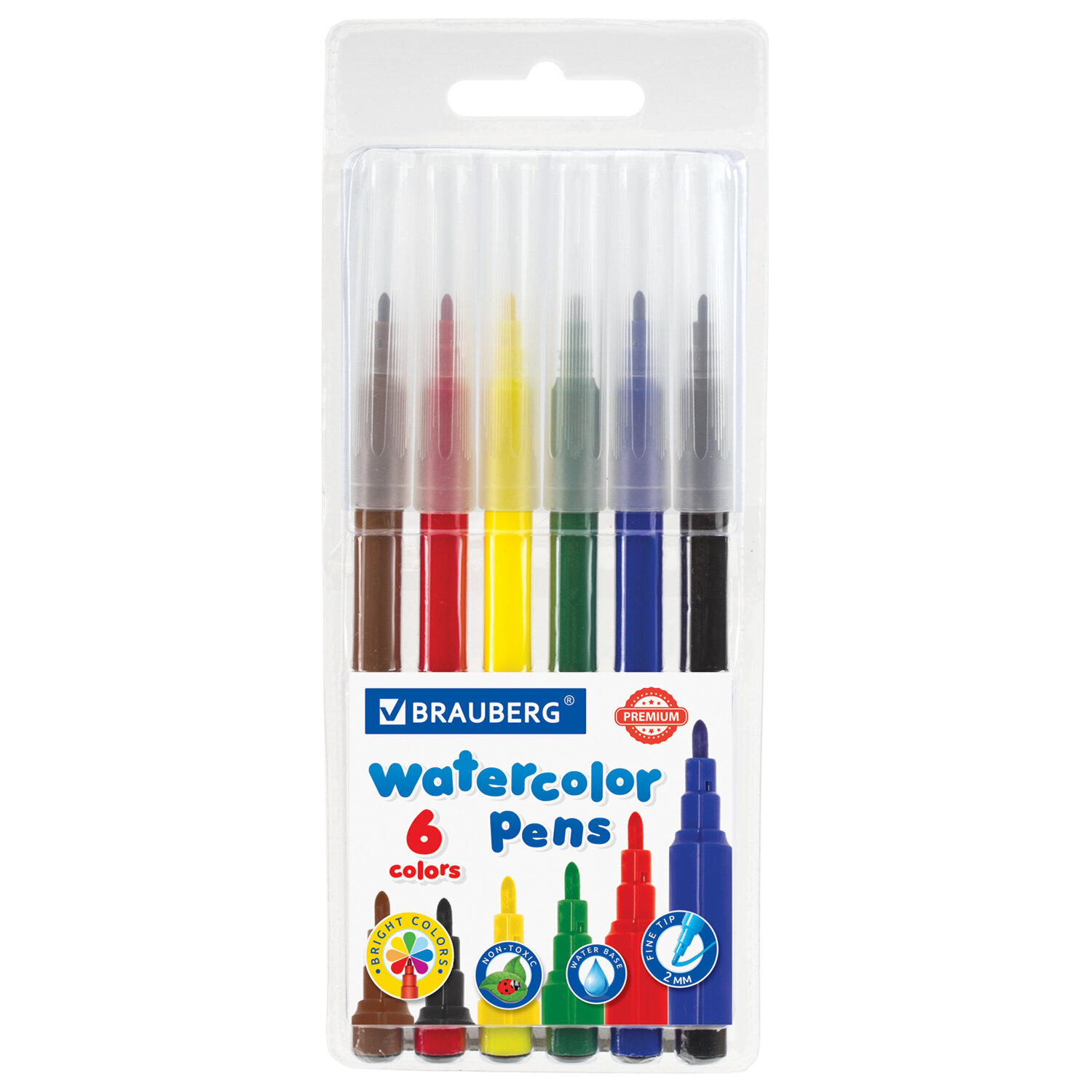 Набор фломастеров BRAUBERG «PREMIUM» с насыщенными, яркими цветами в количестве 6 штук. Чернила на водной основе практически не имеют запаха, не токсичны и легко смываются с большинства материалов и тканей.