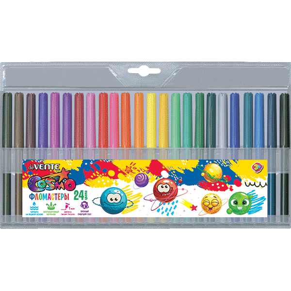Фломастеры "deVENTE. Cosmo" 24 цвета с вентилируемым колпачком, в пластиковом блистере.