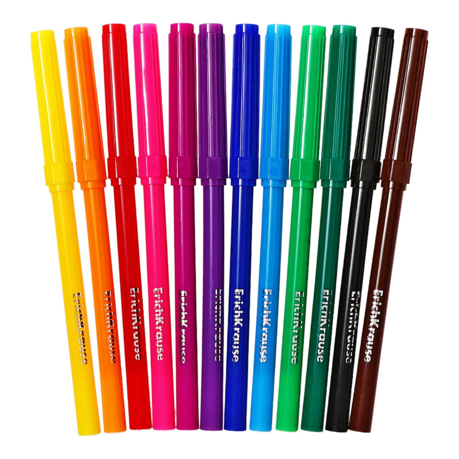 Фломастеры ErichKrause со смываемыми чернилами на водной основе. Идеально подходят как для рисования, так и для раскрашивания. Широкая палитра ярких цветов. Наконечник сохраняет форму при интенсивном использовании. Чернила на водной основе не имеют запаха, отстирываются с большинства тканей и поверхностей. Герметичный корпус из полипропилена не образует острых сколов при поломке и предотвращает высыхание чернил. Фломастеры снабжены вентилируемыми колпачками, окрашенными в тон корпуса.