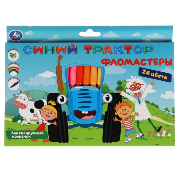Фломастеры Синий ТРАКТОР 24цв, круглые, карт коробка