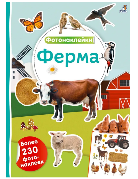 В ней более 230 фотонаклеек с реалистичными изображениями коров, овец, лошадей, гусей и других животных на ферме, которых малыш легко узнает.