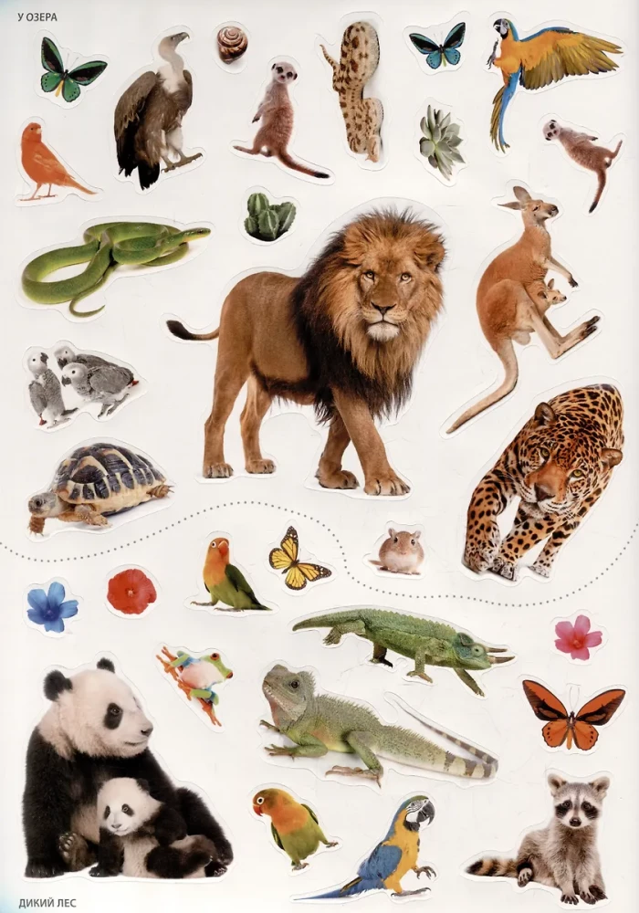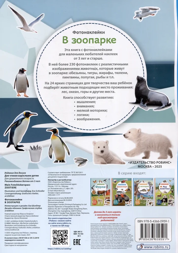 В ней более 230 фотонаклеек с реалистичными изображениями животных, которые живут в зоопарке: обезьяны, тигры, жирафы, тюлени, пингвины, попугаи, рыбы и т.п.