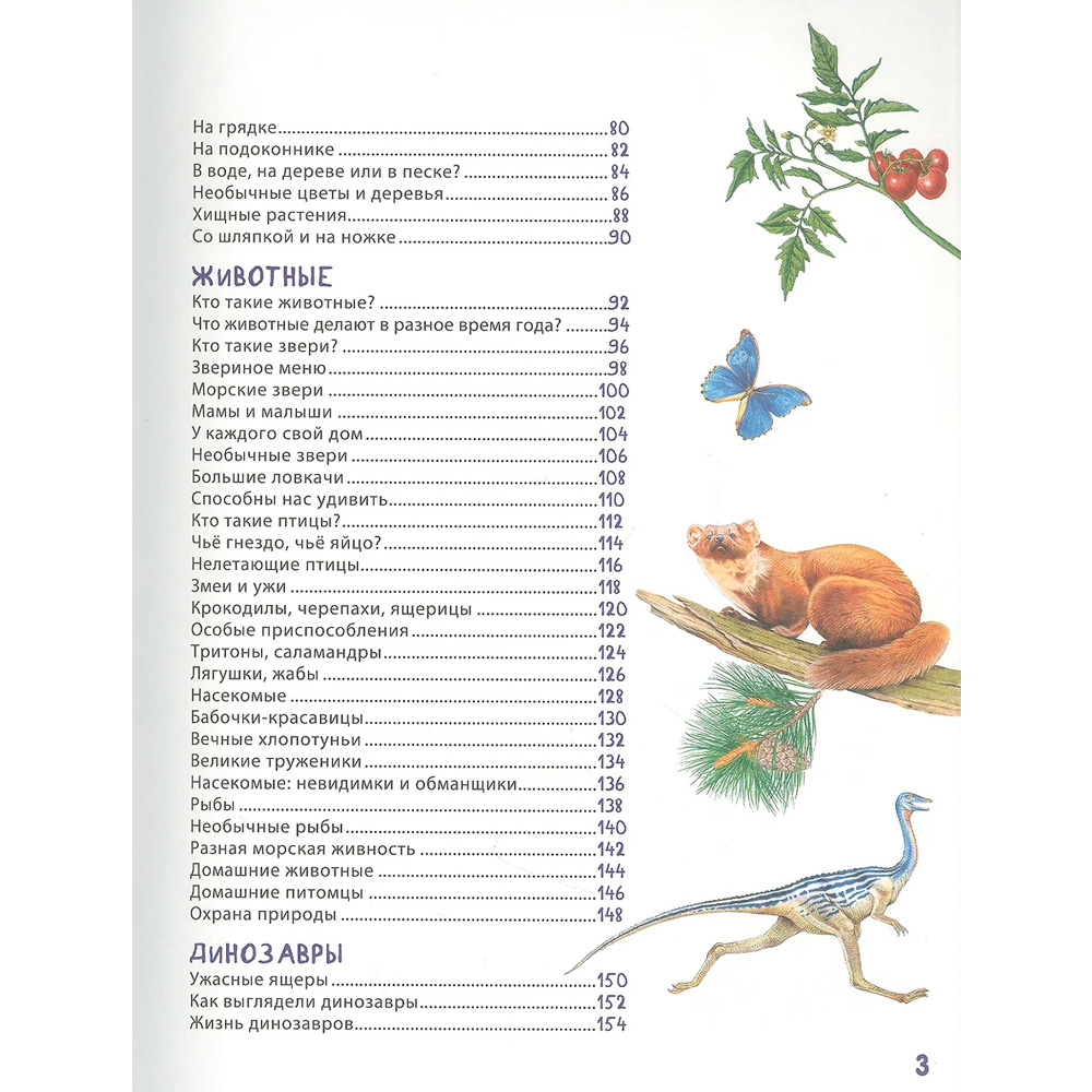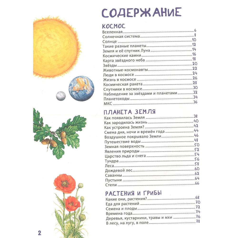 • Книга отражает основные темы: природа, животные, растения, космос, динозавры.