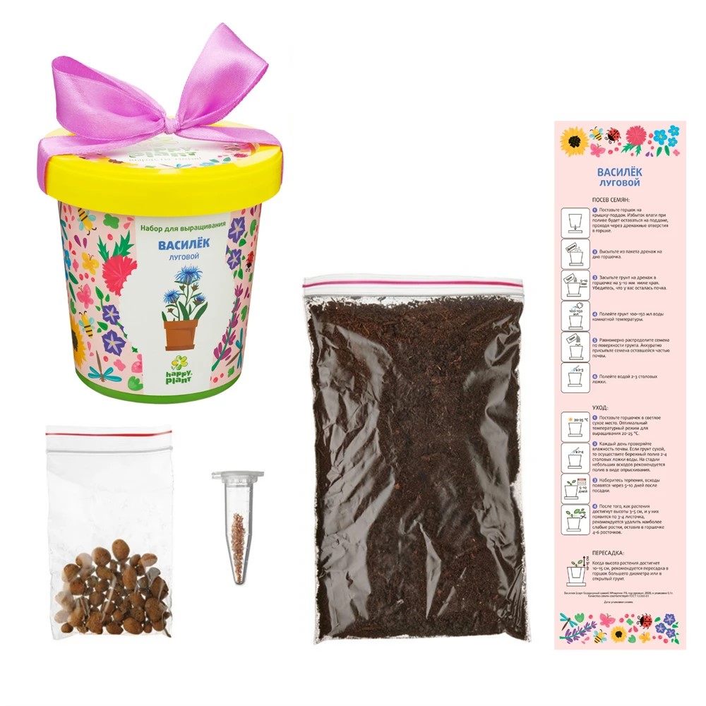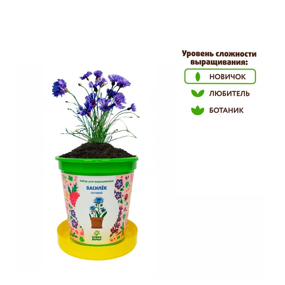 Василёк – это небольшой фиолетовый цветок, который нравится пчёлам, так как это очень хороший медонос. Вырастите луговой Василёк у себя дома! После выращивания его можно будет посадить у себя на участке, и тогда у вас может получиться настоящий васильковый луг. А еще это растение используется в народной медицине. В красивых горшочках бренда Happy Plant есть всё необходимое, чтобы сразу после покупки начать выращивать цветок. В наборах этого бренда вы всегда найдете качественные семена и грунт. В комплекте: горшок, плодородный грунт, керамзит, семена, инструкция. Размер упаковки: 10х7х9,5 см.