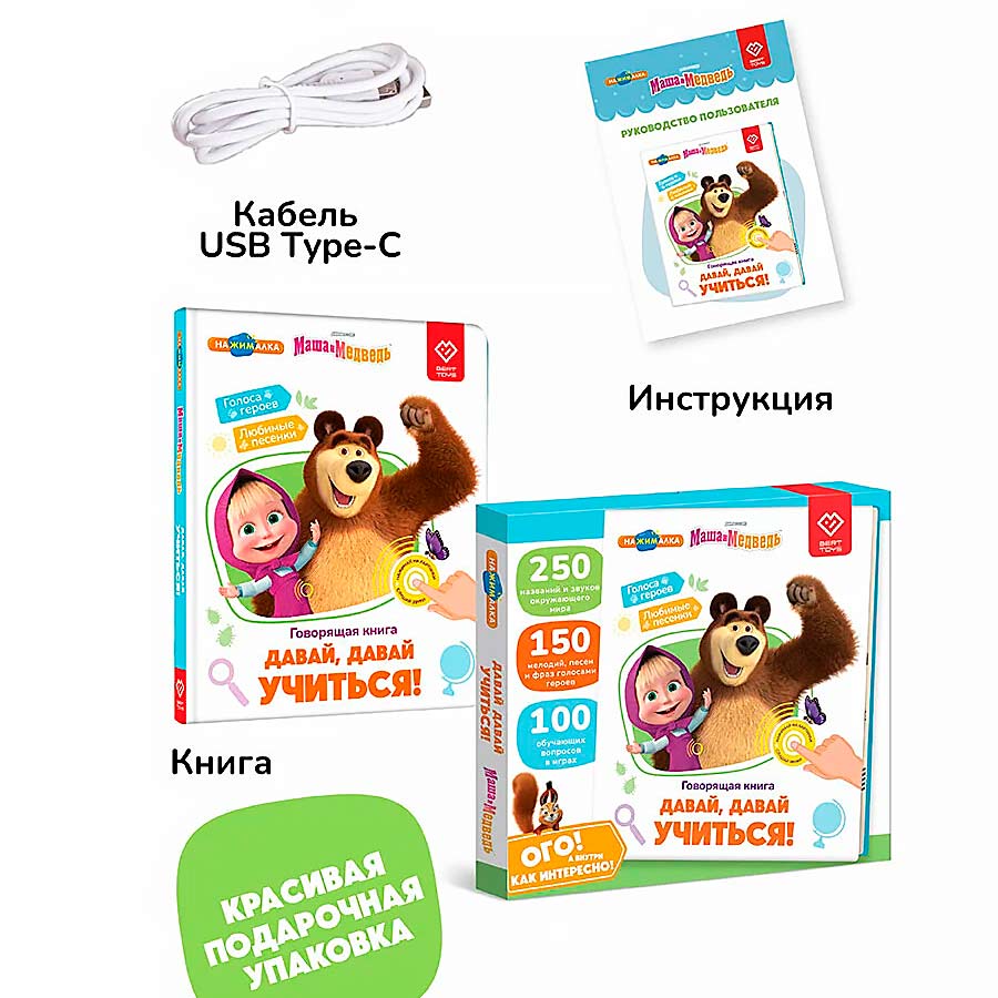 Говорящая книга Маша и медведь Давай давай учиться BertToys FD149. Интерактивная книжка "Нажималка - Маша и Медведь" от BertToys - это развивающая книжка игрушка для детей от 2 до 6 лет, которая подойдет как для мальчиков, так и для девочек.