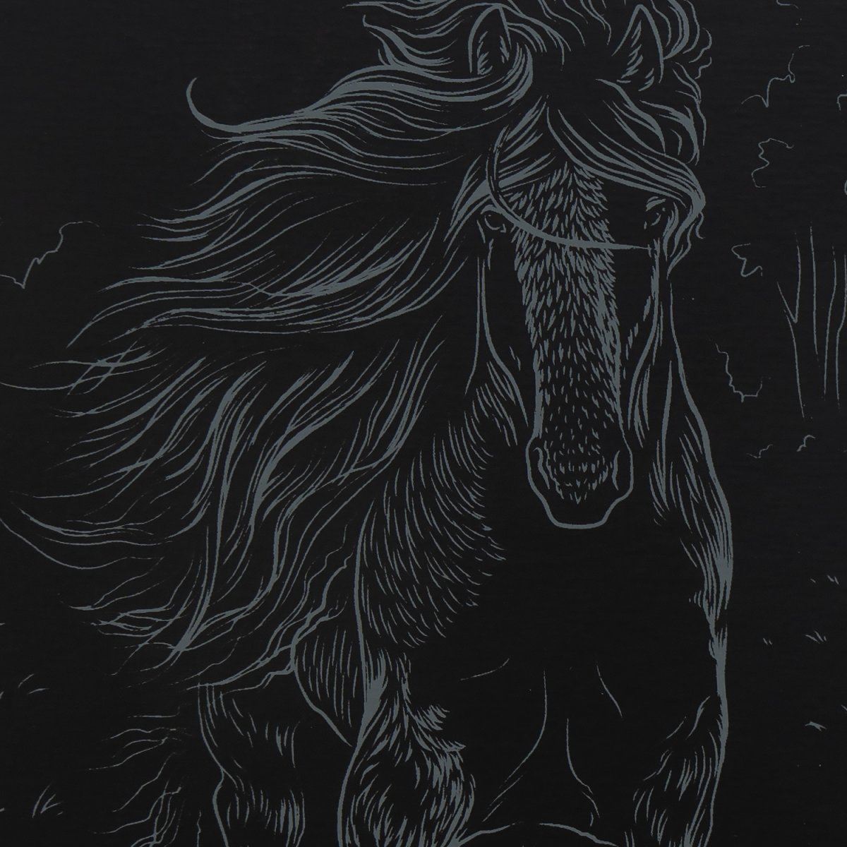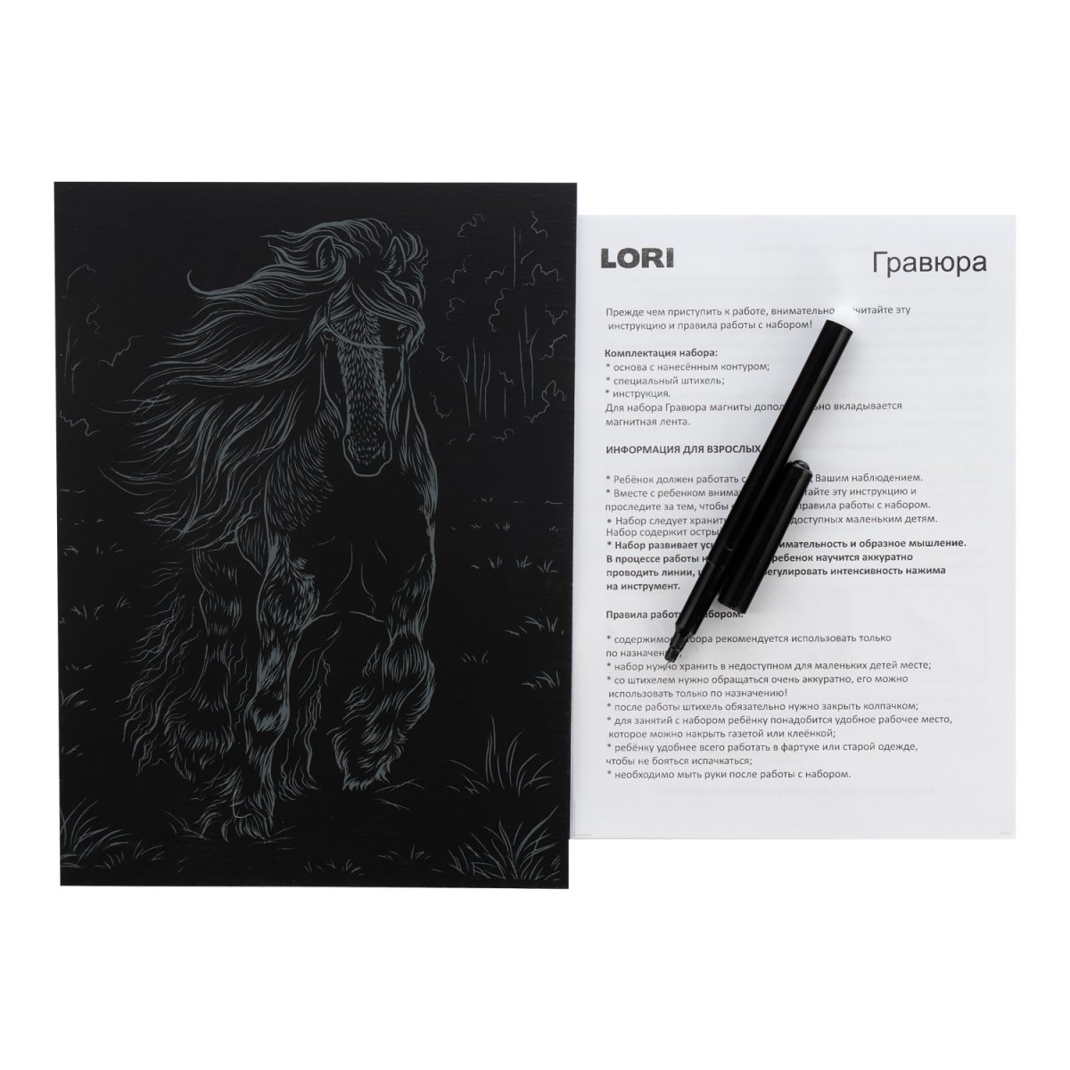 Новая серия гравюр «Лошади» с сюжетами грациозного животного. Гравюра представляет собой многослойное панно, покрытое чёрной краской, на которое нанесён контур рисунка. Техника создания гравюры увлекательна и достаточно проста. Необходимо лишь взять штихель – особый скребок, входящий в состав набора, и процарапать рисунок гравюры. Работа с гравюрой развивает усидчивость, внимательность и образное мышление.