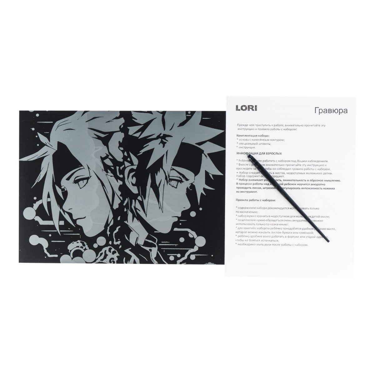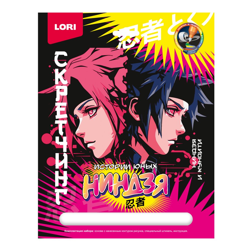 Скретчинг — это особый вид рисования методом сцарапывания верхнего слоя краски специальным инструментом — штихелем. В процессе работы, штрих за штрихом, проглядывается яркая цветная картинка с крутыми героями ниндзя, которые на черном фоне смотрятся необычно и стильно.