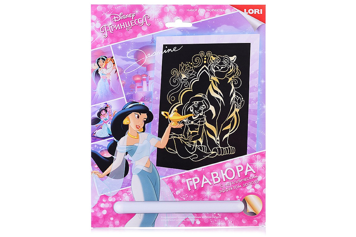 Гравюра Disney большая с эффектом золота "Жасмин и Раджа"