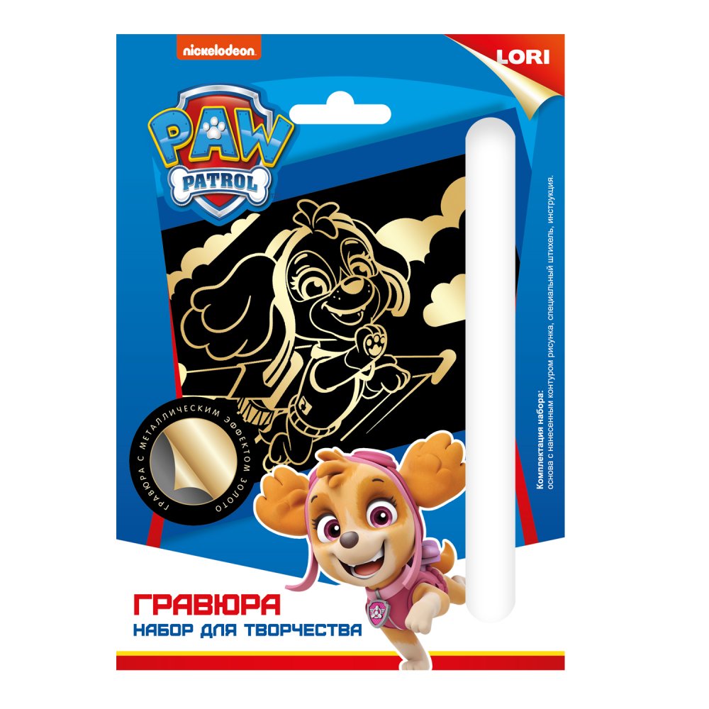 Гравюра Щенячий патруль малая с металлическим эффектом золото "Скай"