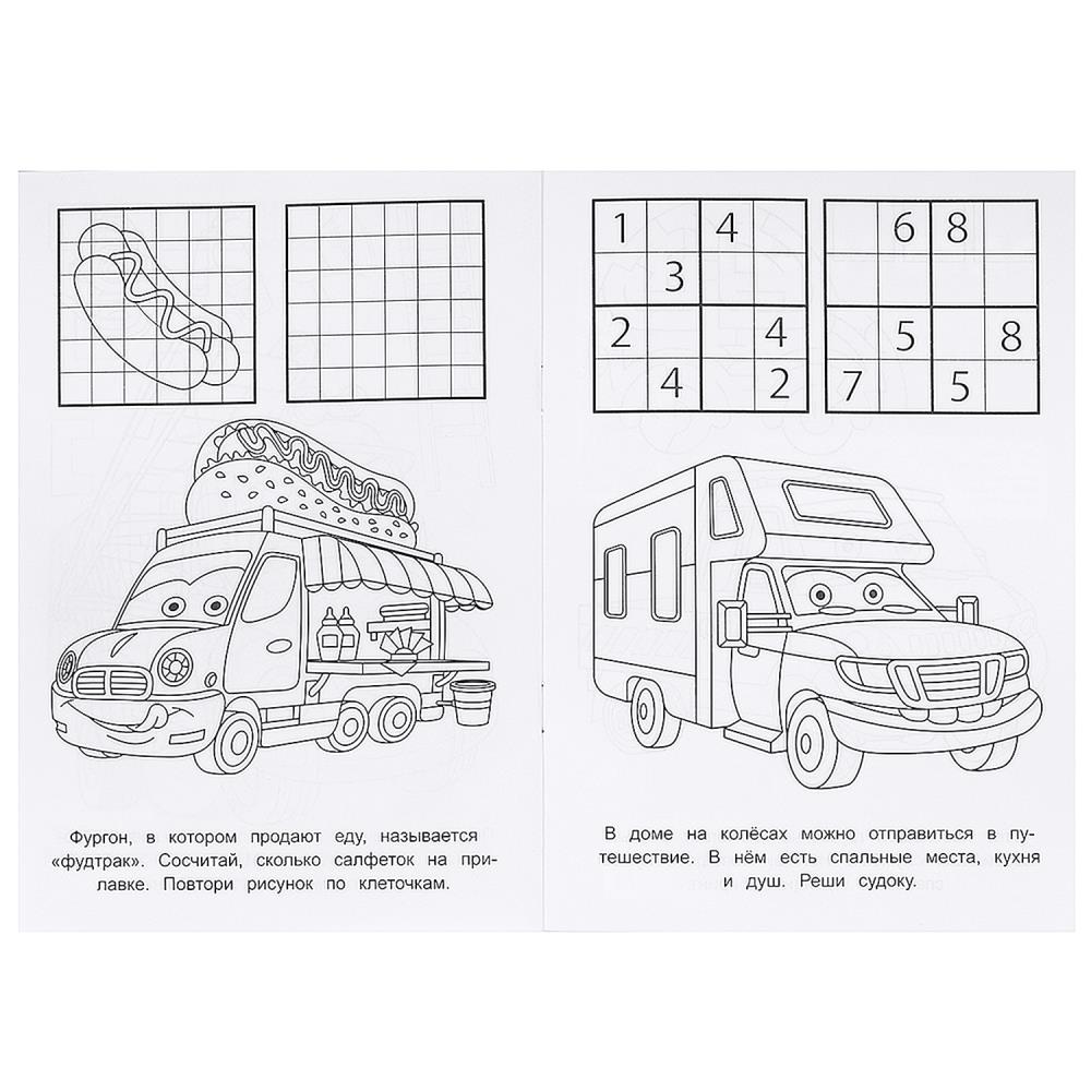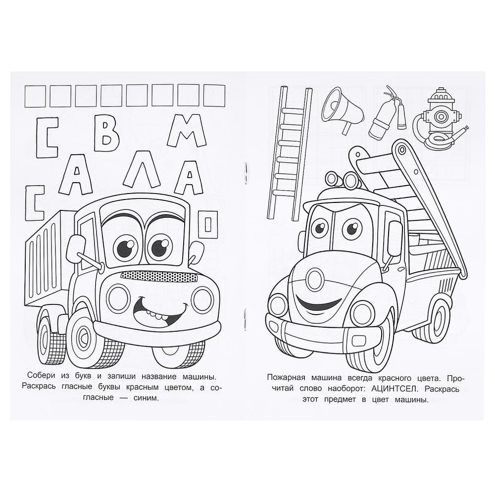 На страницах этой занимательной раскраски ребёнок найдёт иллюстрации с изображением весёлых машинок. Раскрашивая интересные картинки с чётким контуром, он научится не выходить за границу рисунка, а увлекательные задания помогут развить логику и внимание. Благодаря небольшому формату раскраску удобно брать с собой в дорогу.