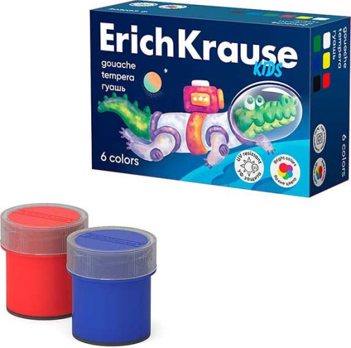Гуашь ErichKrause Kids Space Animals с УФ защитой яркости 6 цветов по 20 мл (в коробке 6 шт)