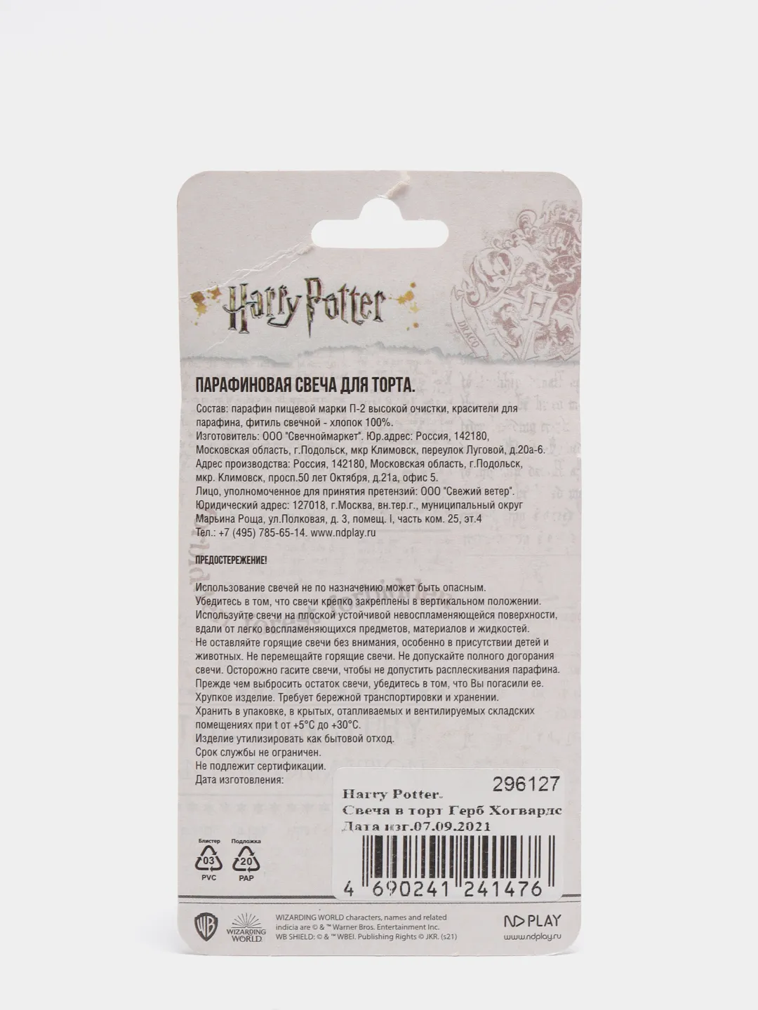 Свеча в торт Гарри Поттер с гербами волшебных факультетов изготовлена из качественного пищевого парафина и упакована в блистер с еврохолдером. Свеча-цифра не займет много места на торте и не испортит внешний вид праздничного угощения.