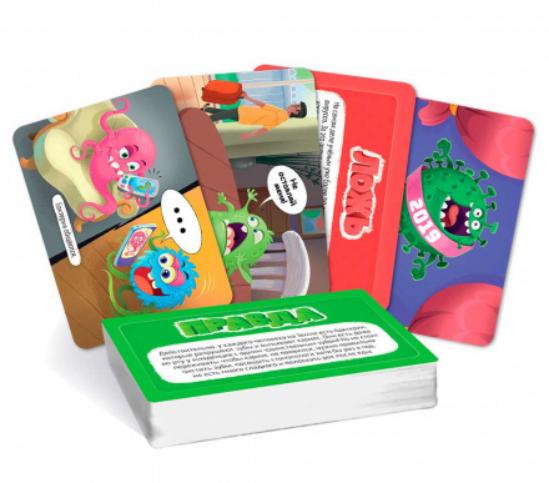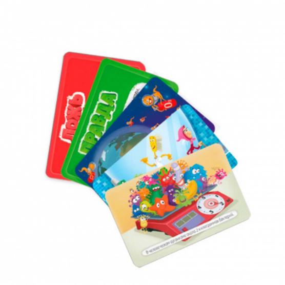 Какие бактерии полезны для человека? Что такое вакцина и иммунитет? Эта карточная игра поможет разобраться с такой сложной темой весело и увлекательно! Настоящая находка для любознательных детей и их родителей! На карточках – 50 интересных фактов о вирусах и бактериях и замечательные иллюстрации. Сможете ли вы разобраться, где правда, а где ложь? Играйте – будет интересно!