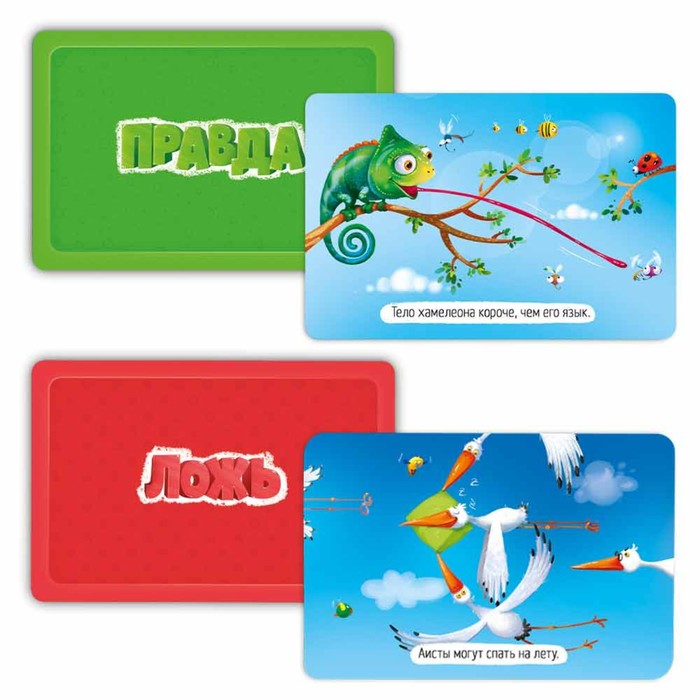 Эта карточная игра – находка для любознательных детей и их родителей! На карточках – 50 интересных фактов о животных и замечательные смешные иллюстрации. Сможете ли вы разобраться, где правда, а где ложь? Играйте – будет интересно!