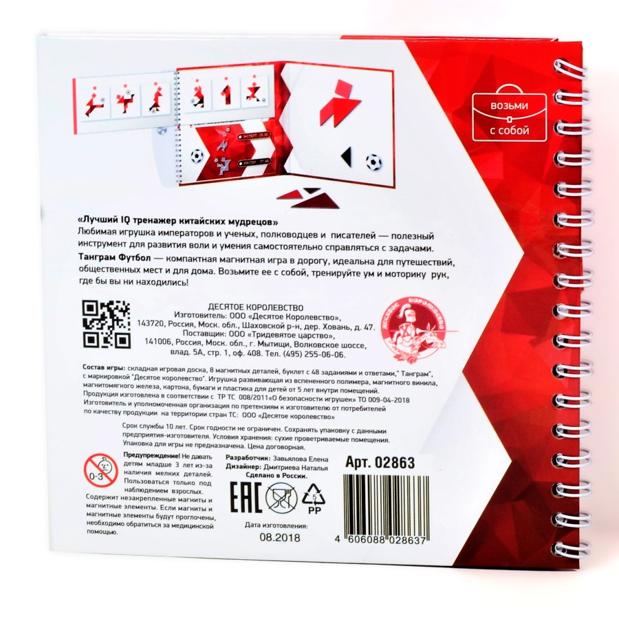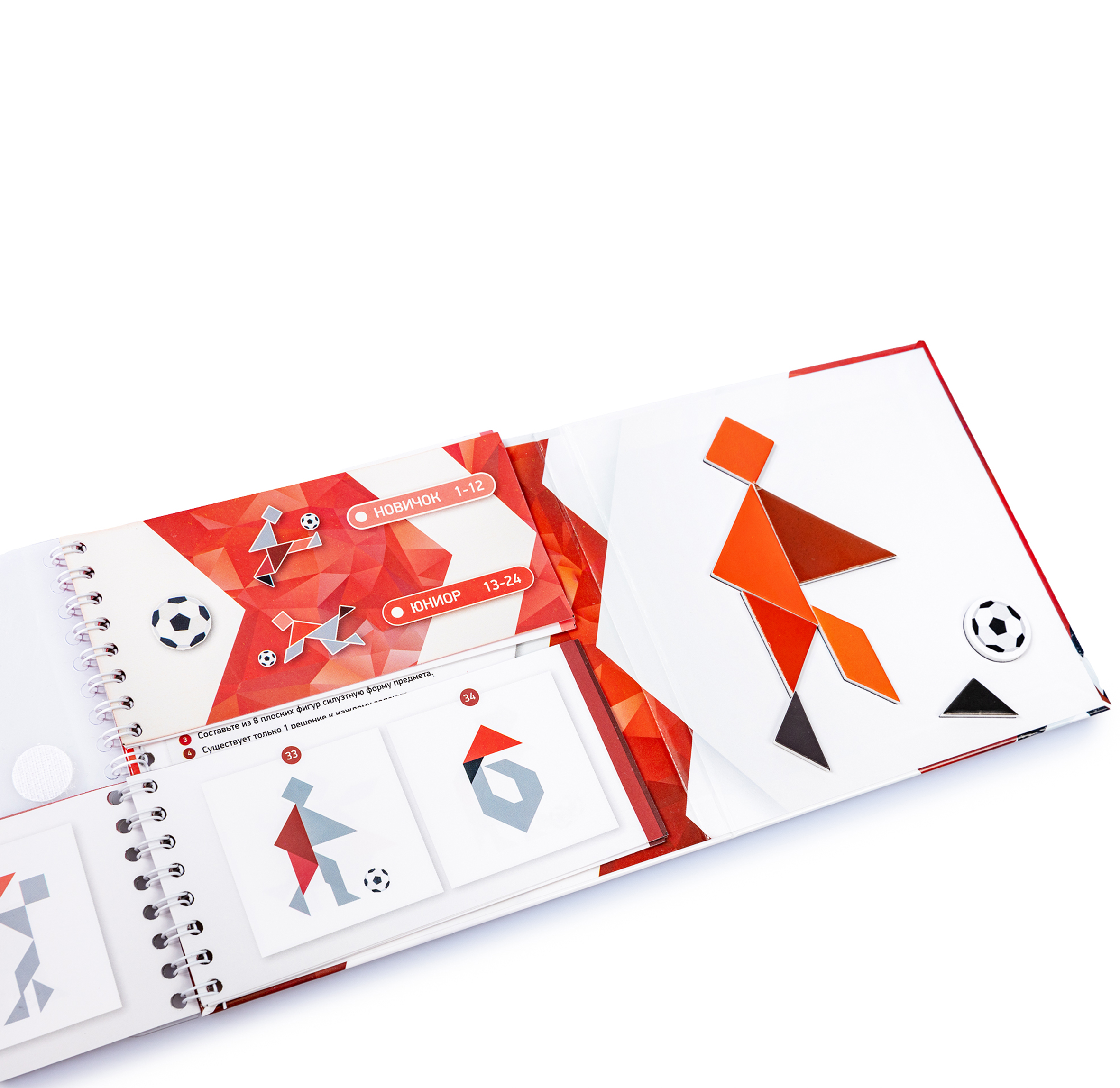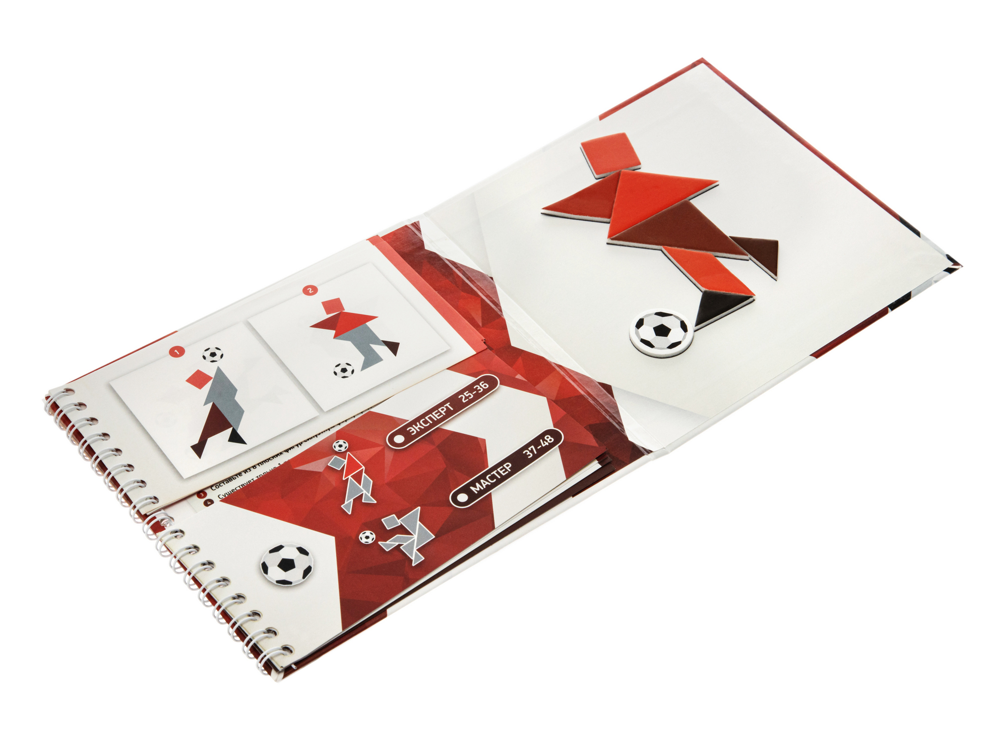 Обучающая портативная игра логическая магнитная головоломка «Футбол» с 4 уровнями сложности - прекрасный инструмент для формирования математического и художественного восприятия, пространственного мышления, развития воображения и комбинаторных способностей. Цель игры – сложить все 7 плоских фигур и мяч таким образом, чтобы получилось изображение с картинками на буклете. Фигуры не должны накладываться друг на друга.