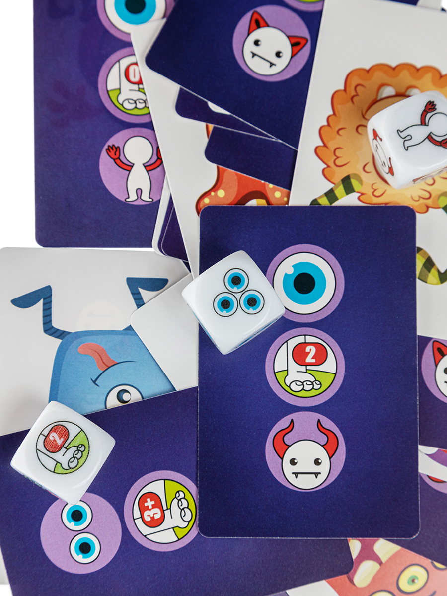Каждый Монстрик — индивидуален. Они отличаются количеством глаз, ног и наличием рук, рогов или ушей. Для того, чтобы понять, кого из Монстриков нужно поймать, игроки бросают кубики: кубики «ГЛАЗА» и «НОГИ» определят количество глаз и ног, а кубик «РУКИ-РОГА-УШИ» укажет на дополнительную опознавательную черту Монстрика.