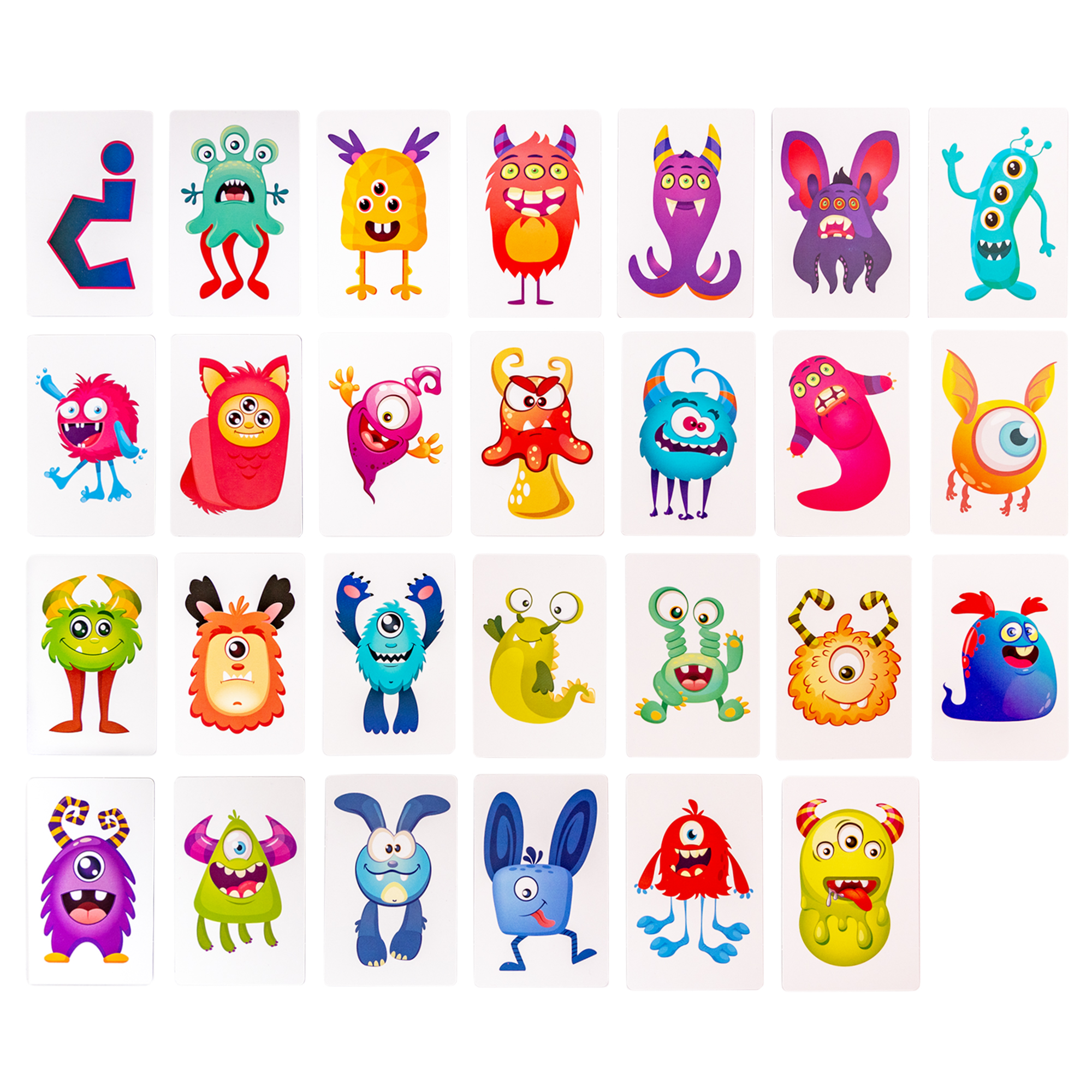 В колоде — 28 карт, из которых 27 карт Монстриков и 1 Карта-выручалка. Перед началом игры все карты раскладываются на столе стороной с Монстриками вверх, а Карта-выручалка кладется в центре.